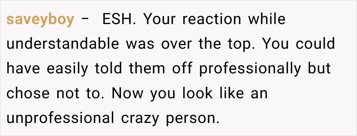 Redditors largely sided with the OP’s frustration (“NTA—parents need to control their kids”), but critiques focused on execution. Top comments praised the OP for “saying what everyone was thinking,” while others called the outburst unprofessional (“ESH—you could’ve handled it without the F-bombs”).