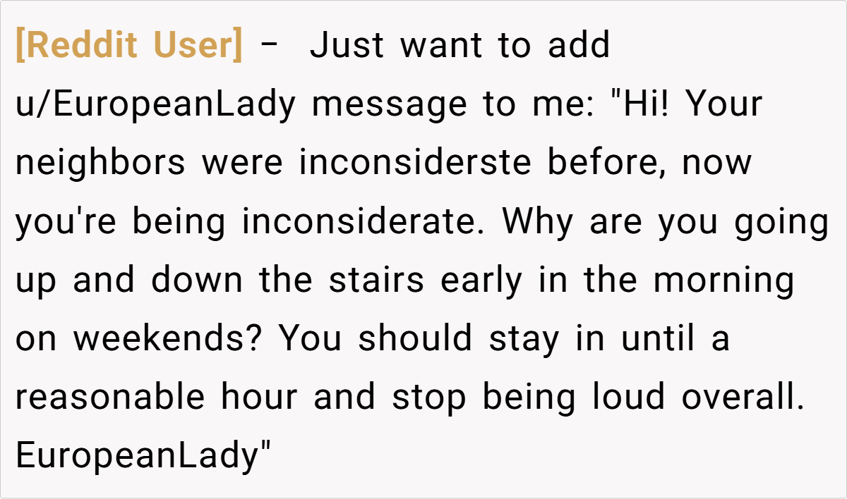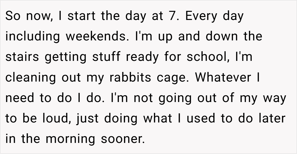 In the end, this story is not merely about early rising or noisy neighbours—it’s a call for thoughtful compromise in shared spaces. The OP’s journey from late mornings to a new early-bird routine sparks an important conversation about how environmental pressures can reshape our lives.