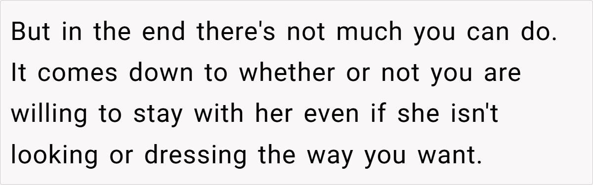 In OP’s case, his girlfriend’s transformation has been rapid and extreme, making it harder for him to adapt. However, attraction and emotional connection aren’t just about looks—they also depend on compatibility and respect.