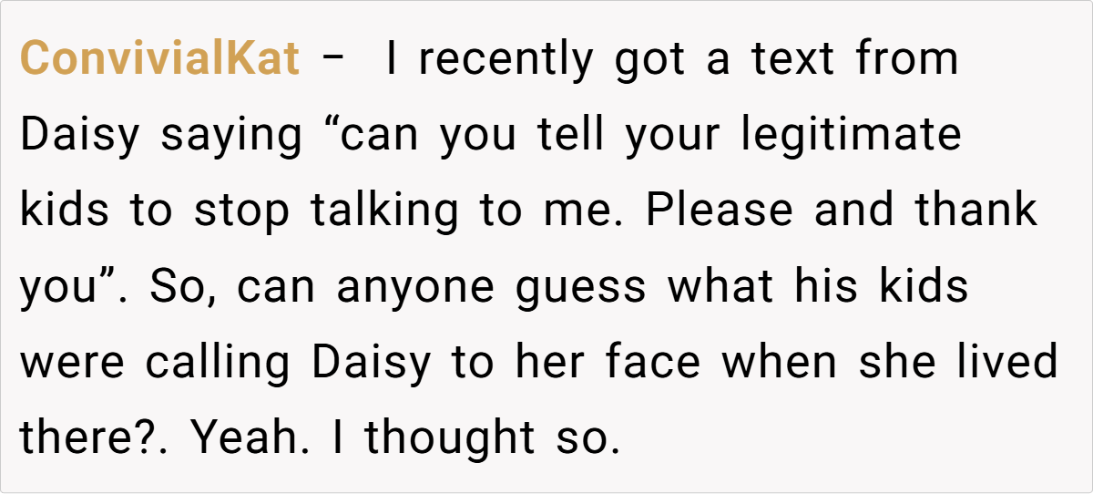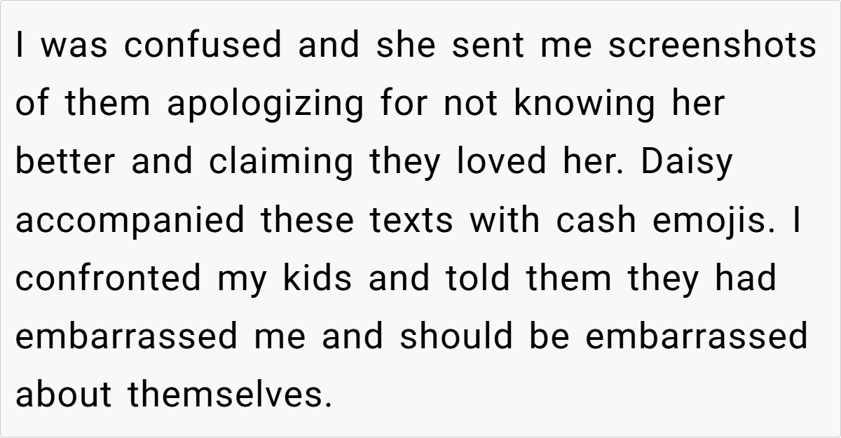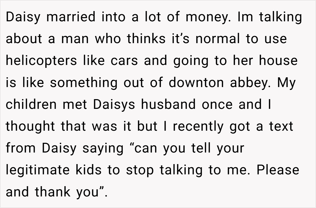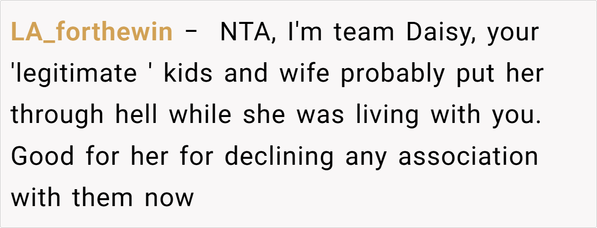 Some users pointed out that the father’s “legitimate” family only seemed to acknowledge Daisy when money entered the equation. Others questioned how a household could be run in such a way that Daisy was actively ignored for years. And then there were those who called out the wife and kids for what they perceived as hypocrisy.