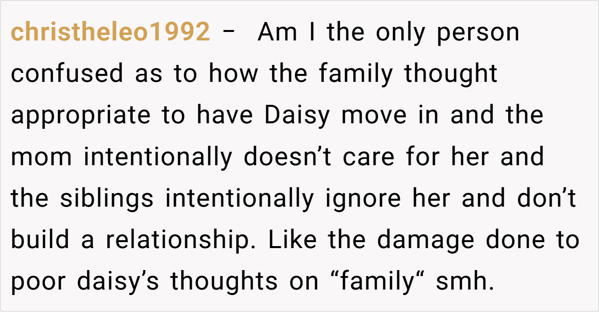 But what’s the solution? Experts suggest open and honest communication early on. Family therapy could have helped bridge the gap before it widened beyond repair. Additionally, clear boundaries should have been set when Daisy moved in—rather than allowing an unspoken but deeply felt divide to persist.