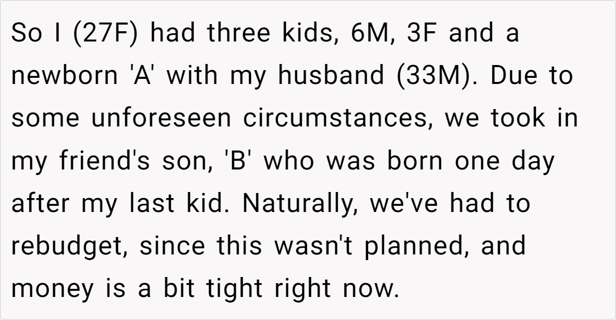 When financial strain forces a family to make tough choices, how do you balance fairness between biological children and a child you’ve taken in? A mother faces criticism for perceived favoritism—but is she truly in the wrong?