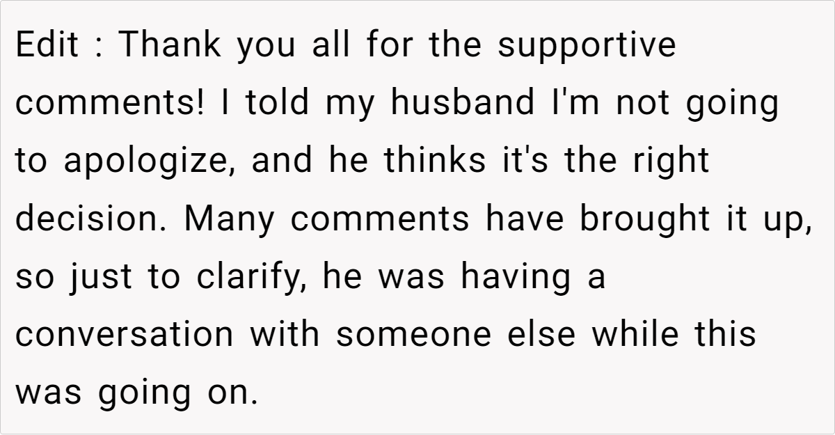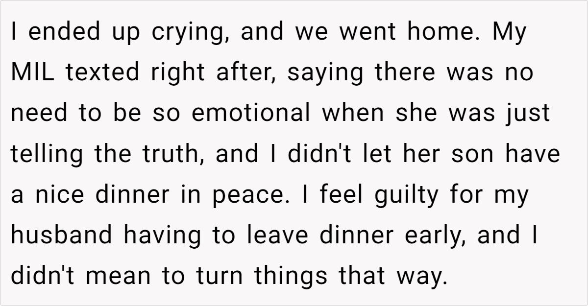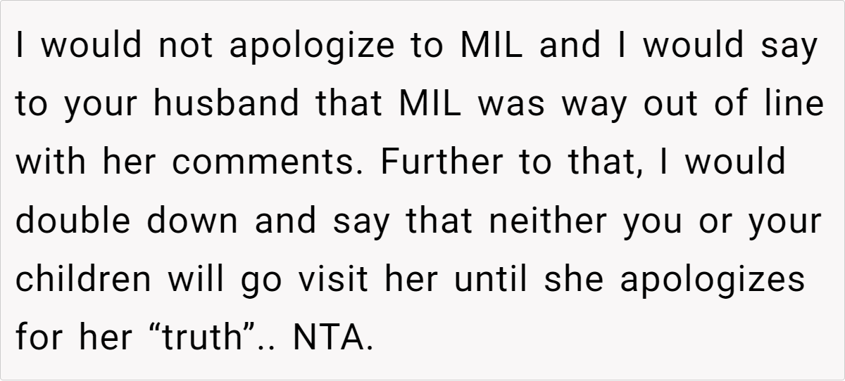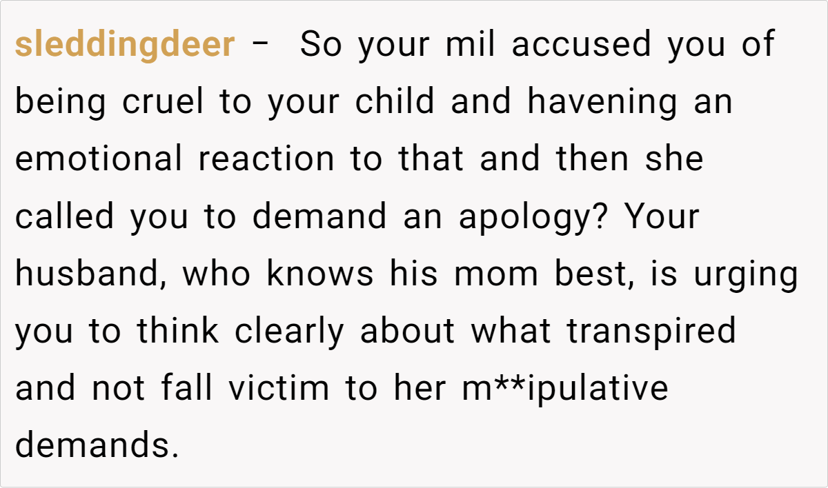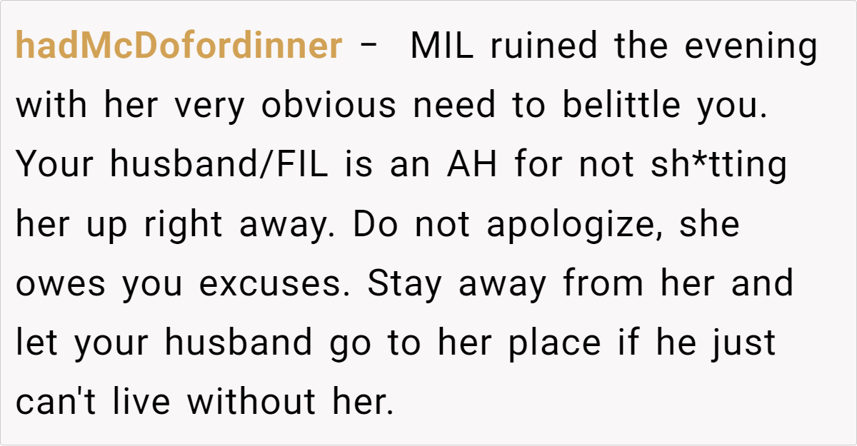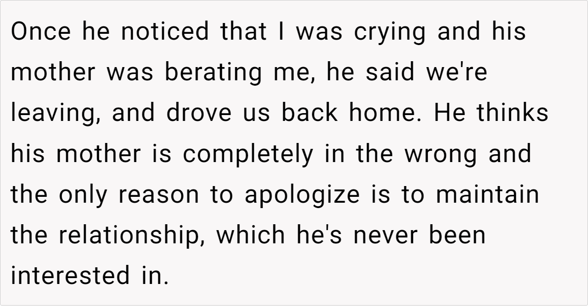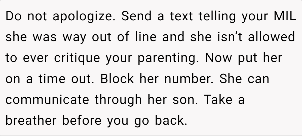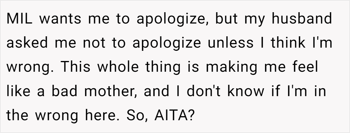 Dr. Tara Peters, a family therapist, advises: “Criticism from in-laws during crises exacerbates guilt. Partners must present a united front to protect their household’s emotional well-being.” OP’s husband modeling support—not pressuring her to apologize—is key to mitigating harm.