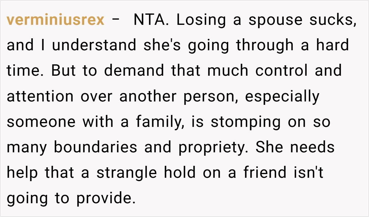 What began as an attempt to balance compassion and personal boundaries escalated into an explosive argument that left deep emotional wounds. This story raises challenging questions about how to navigate grief, friendship, and marital boundaries when overlapping worlds collide. Read the original story below…