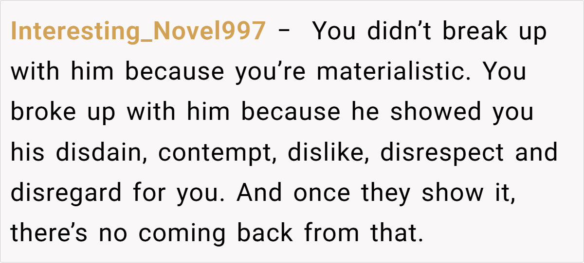 is never just a gift—it’s a reflection of respect and care. Conversely, a few voices suggest that maybe she should have looked past one disappointing gift, considering other aspects of their relationship. However, most agree that when a partner’s actions consistently undermine your emotional well‑being—especially on a day meant to share love—the decision to break up is justified.