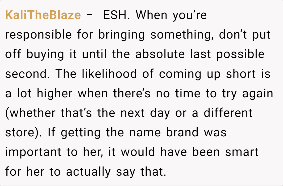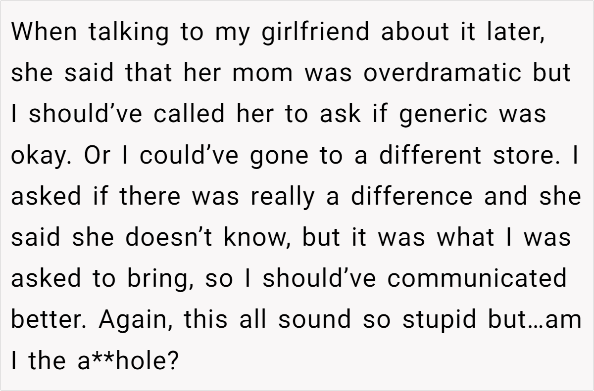 ‘AITA for bringing a generic product vs the name brand I was asked to bring?’