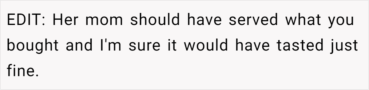 Moreover, the narrative hints at the sometimes absurd power of brand identity. For some, the difference in taste and texture can be significant—much like preferring one type of ketchup over another. Yet, it’s worth questioning whether the rigidity of brand expectations should overshadow the spirit of contribution. When someone is invited to a family event, the gesture of bringing something, even if not exactly as requested, should ideally be met with gratitude rather than criticism.