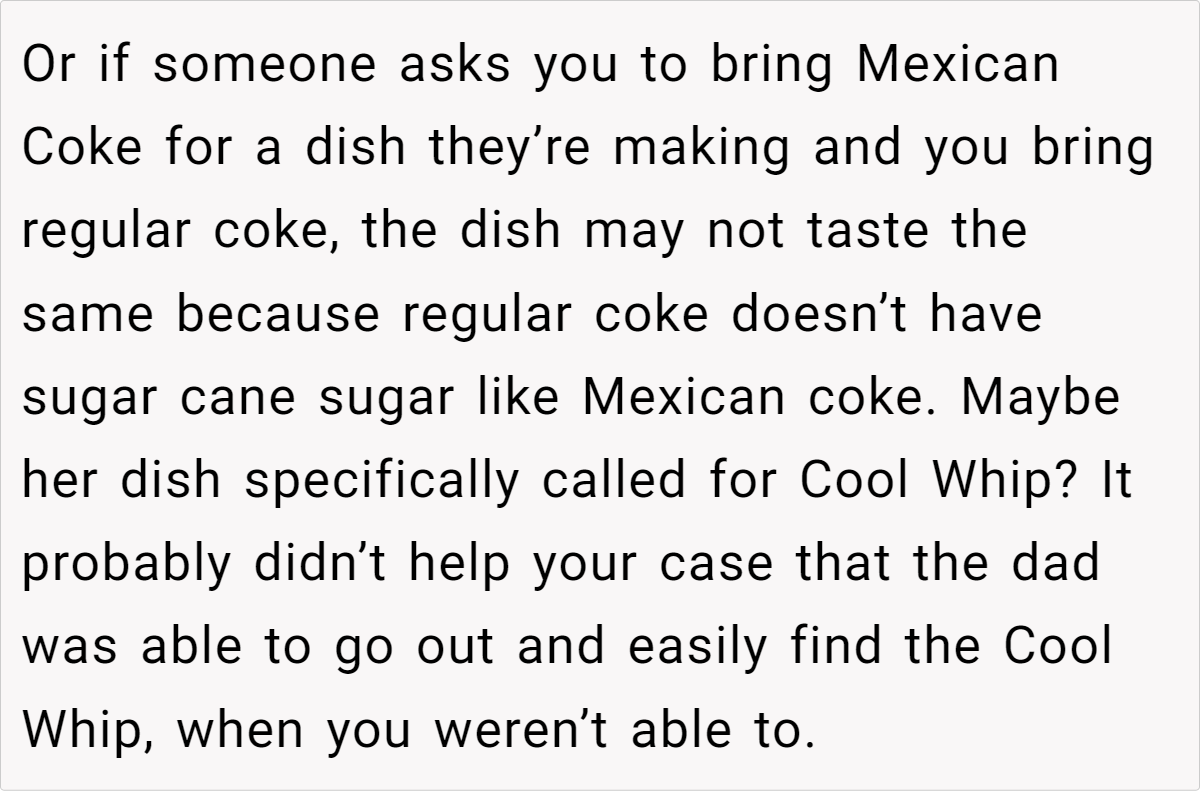 Delving deeper, the incident reveals a broader issue of communication and expectation. When given a specific instruction, fulfilling it precisely is important; however, unforeseen circumstances sometimes force us to improvise. The redditor’s decision to pick up the generic version was made in a time crunch, highlighting that sometimes practicality must outweigh perfection. This incident, while minor in culinary terms, reflects the complex dynamics of family expectations where even a simple task can become a battleground for perceived slights.