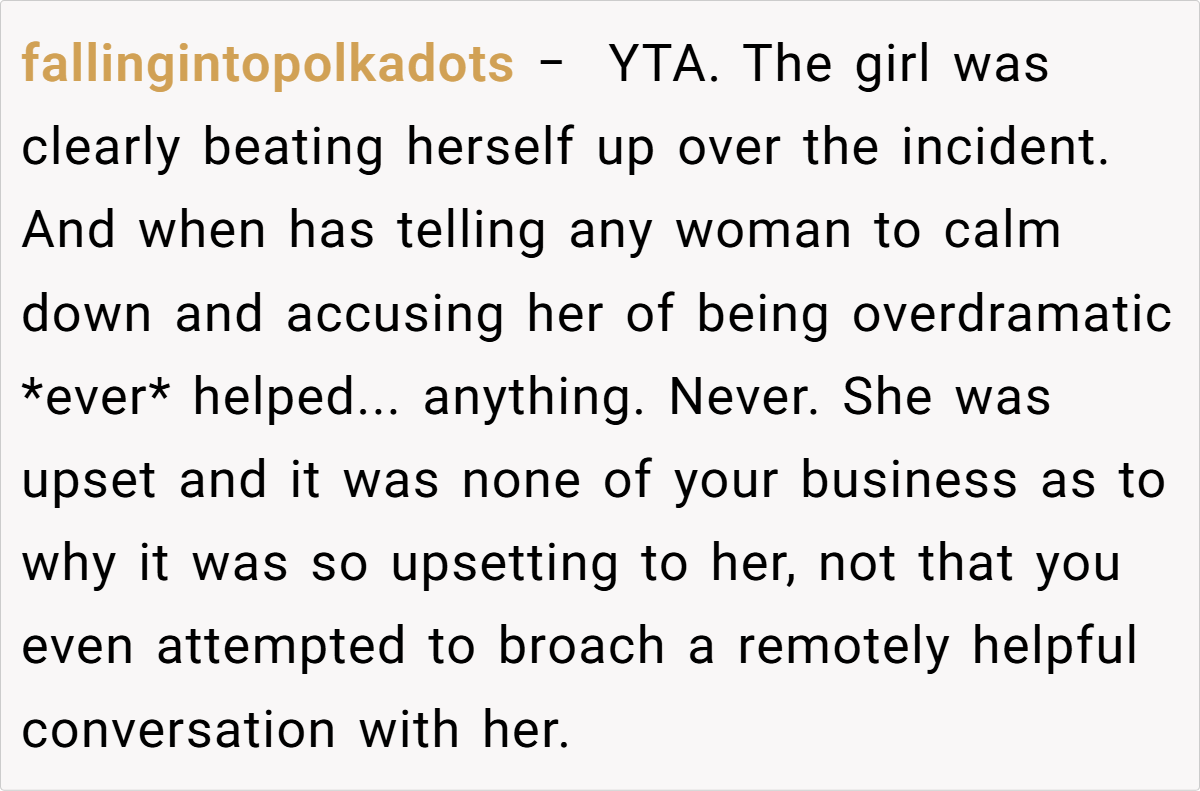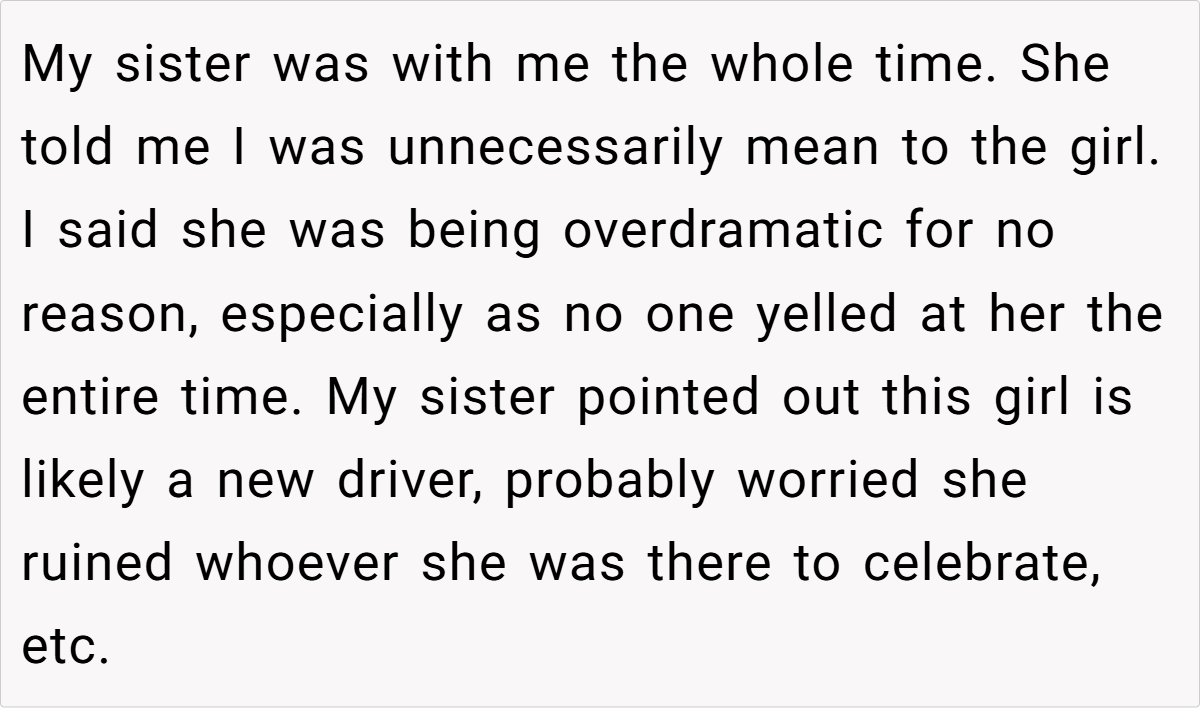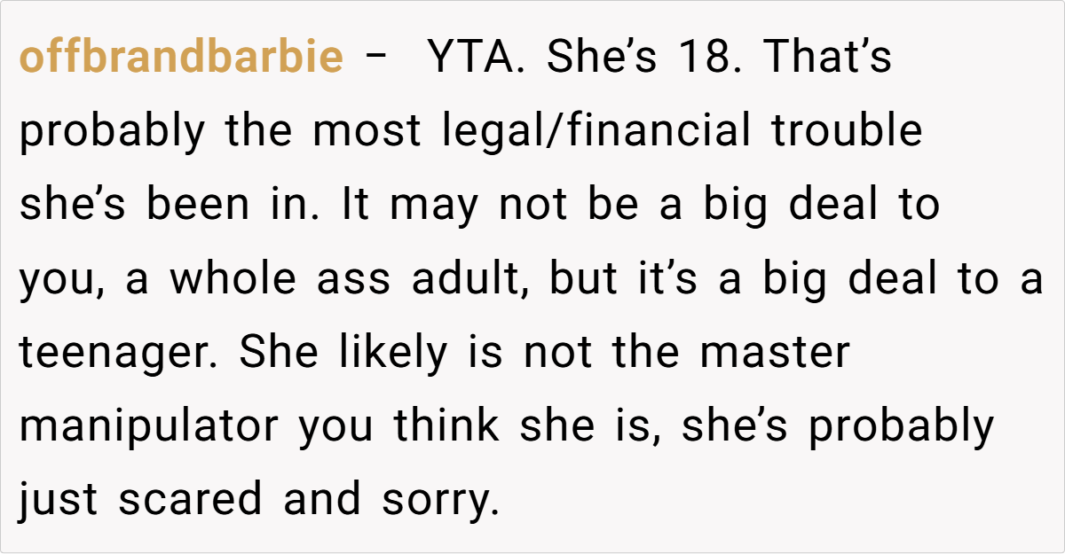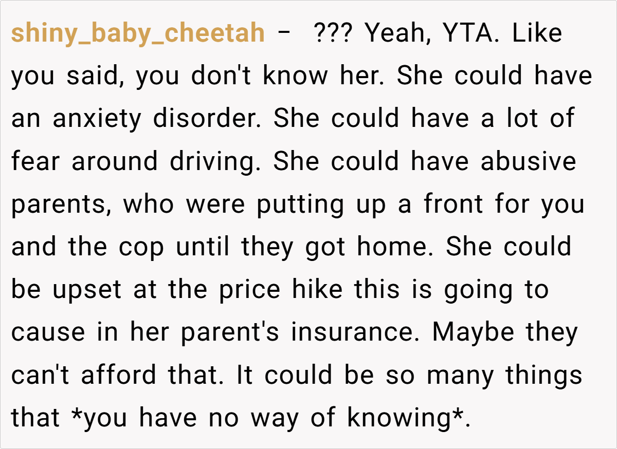 Others, however, emphasized that an inexperienced driver’s emotional outburst likely stemmed from genuine anxiety and fear, urging for a more empathetic approach. Overall, the discussion underscored a common theme: while discipline is important, understanding and compassion are equally vital when dealing with young drivers facing their first serious mistake.