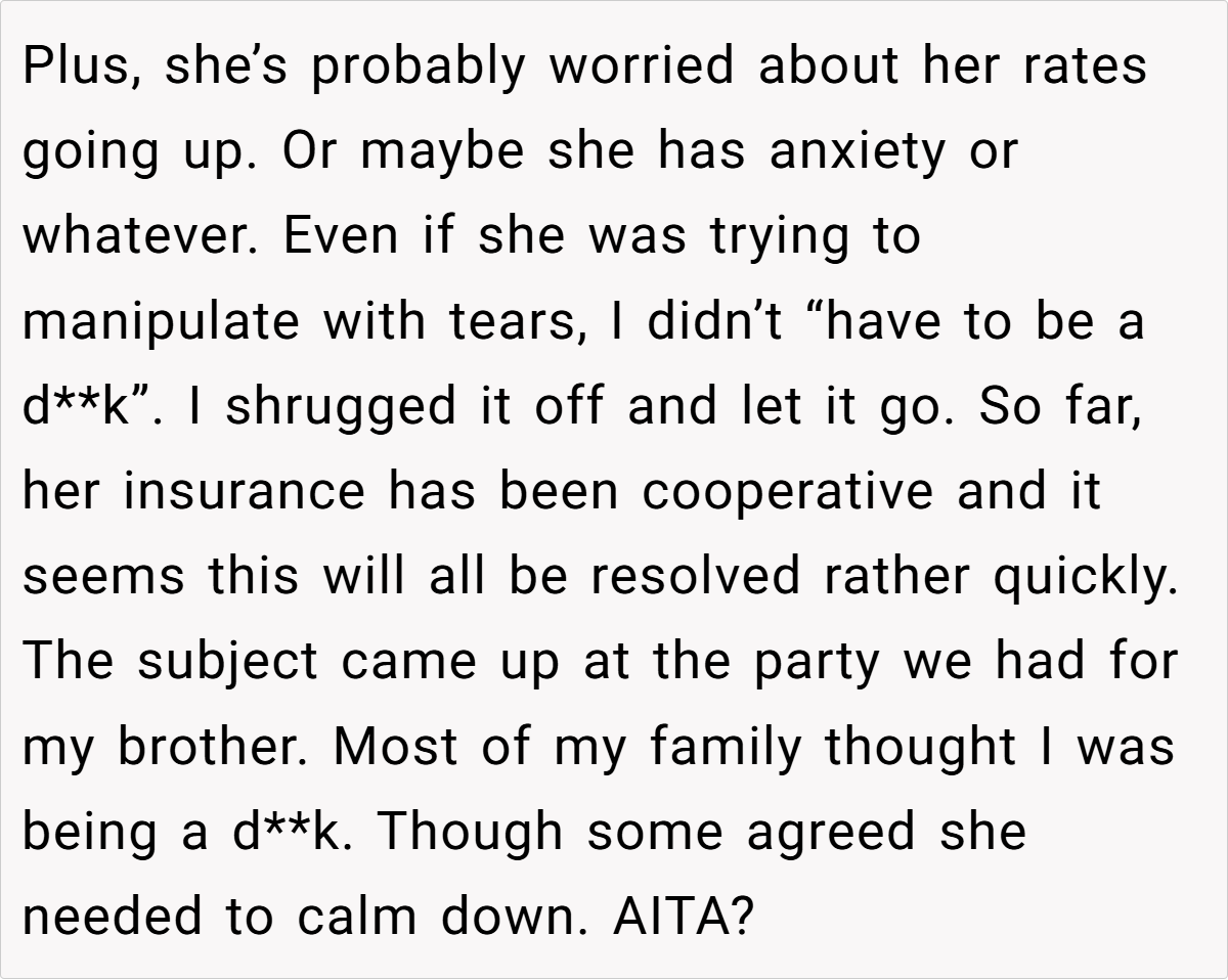 ‘AITA for calling a girl overdramatic when she was crying after rear-ending me? ‘