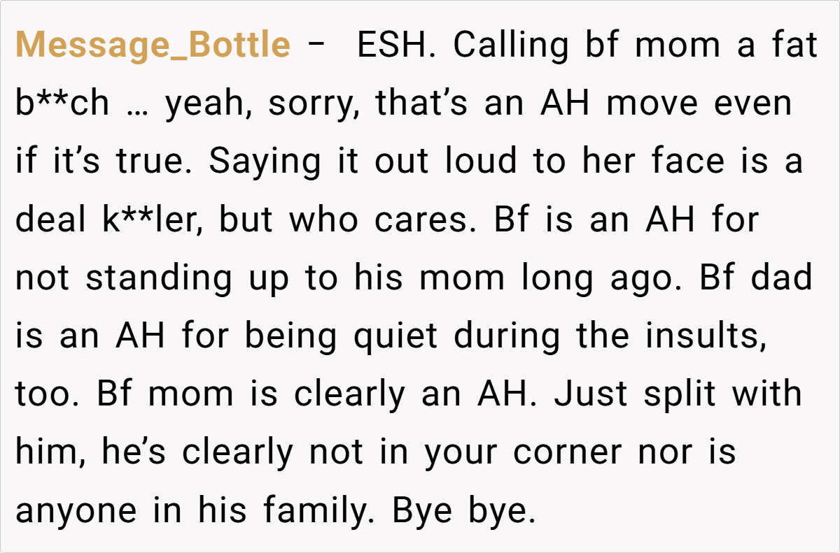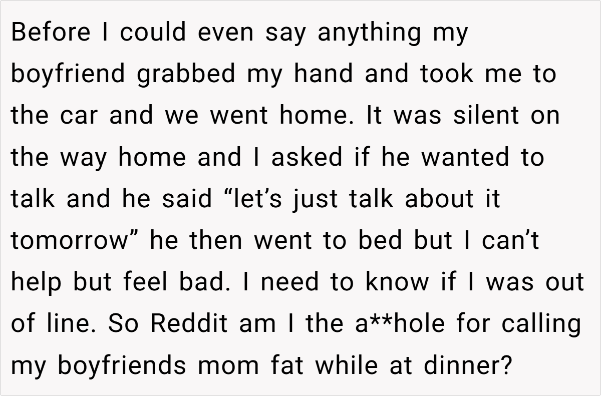 ‘ AITA for calling my boyfriends mom fat at dinner?’