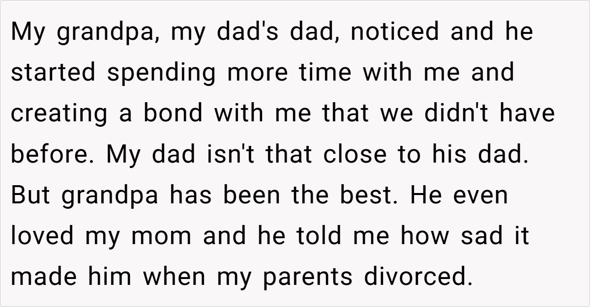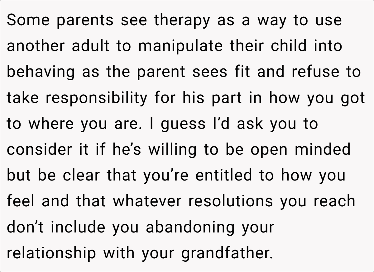 Despite her efforts to communicate her feelings, her father’s excuses and preferential treatment left her feeling isolated. Seeking solace with her caring grandfather, she reached a breaking point and lashed out, calling him a hypocrite and rejecting family therapy as a fix. Is her anger justified, or is she overreacting?