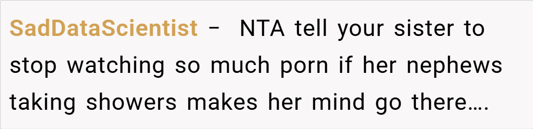 AITA for calling my sister wacko over my boys’ “inappropriate” shower habits?