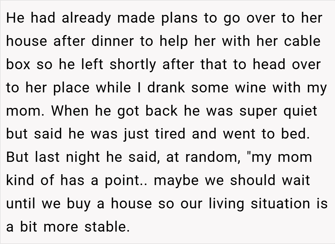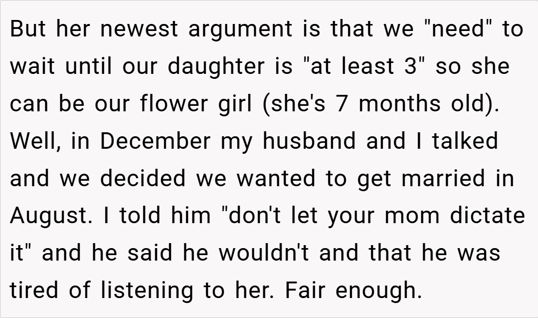 “A successful marriage requires both partners to stand together against external pressures,” she says. “If one partner continuously allows another to dictate major decisions, it undermines the couple’s ability to function as a unit.” In this light, the OP’s drastic measure may be interpreted as an attempt to reclaim agency in a situation where he felt marginalized by his fiancé’s mother’s persistent interference.