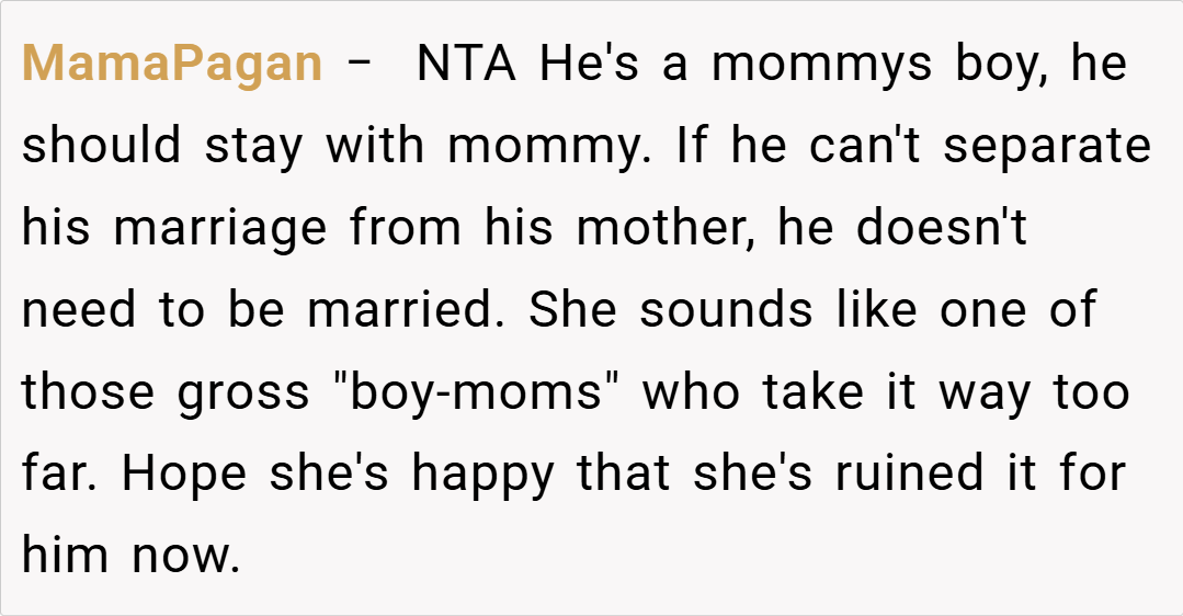 In the end, the OP’s decision to cancel his wedding and demand that his fiancé move back home with her mother highlights the profound impact that external family interference can have on a relationship. While his actions may seem drastic to some, they also underscore a deep-seated need for autonomy and mutual respect in planning a shared future.