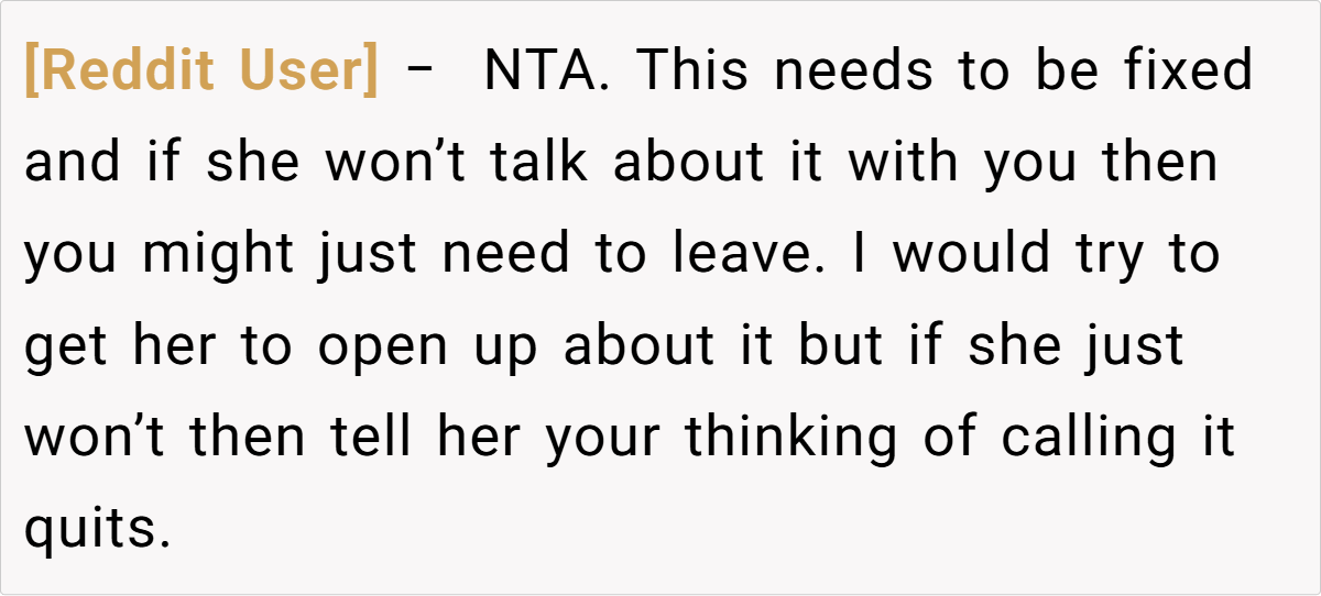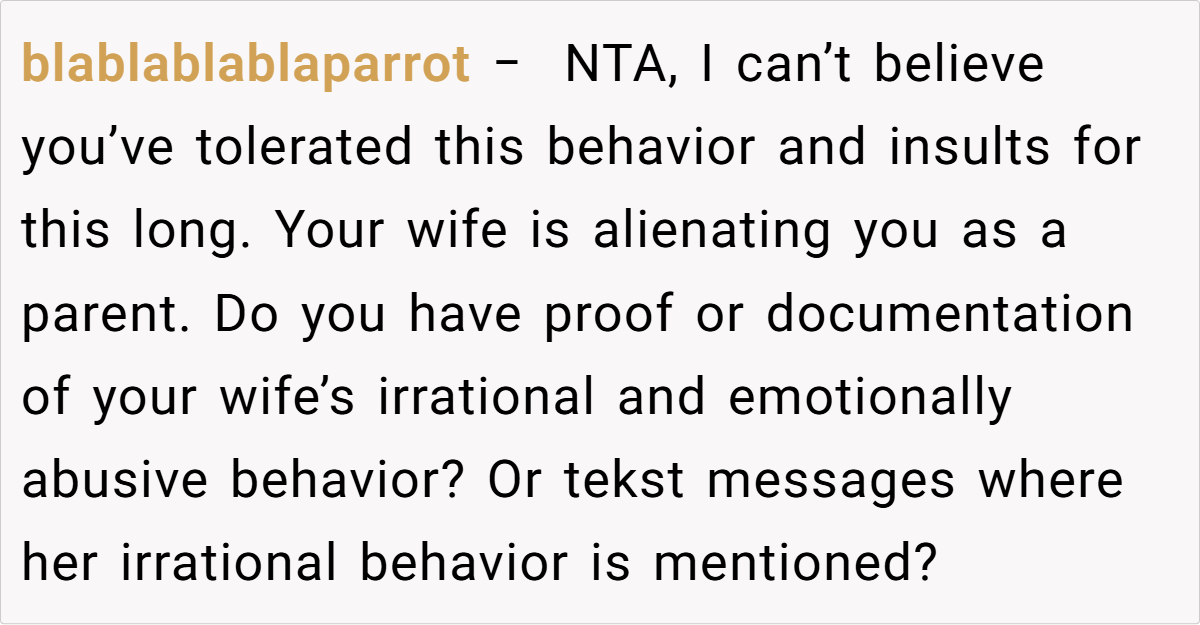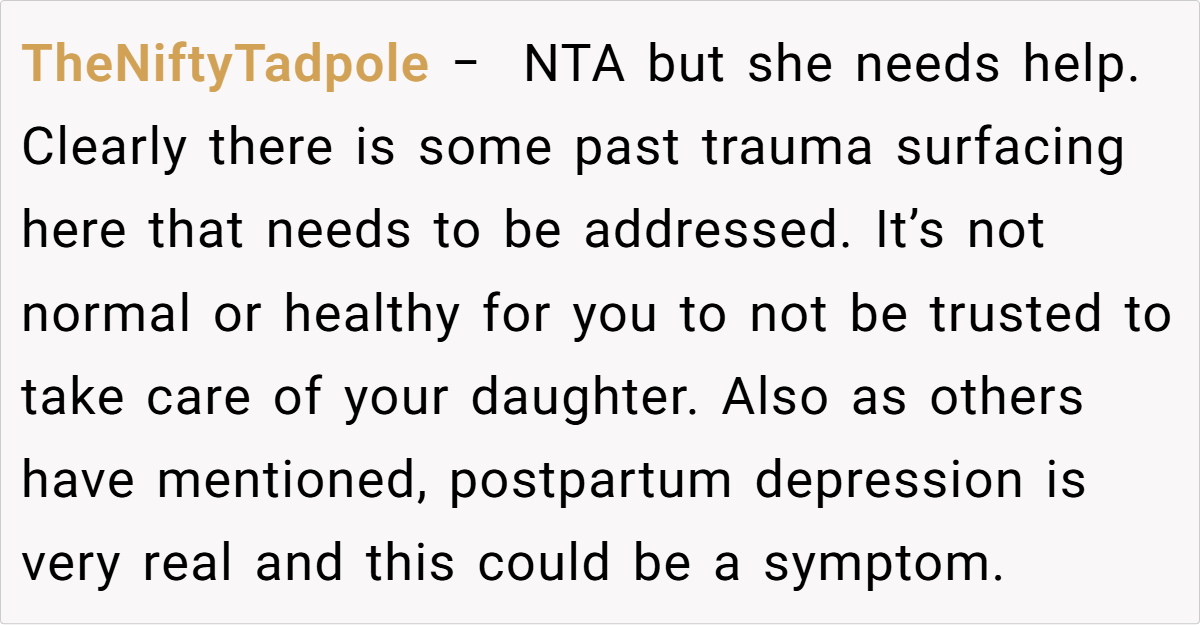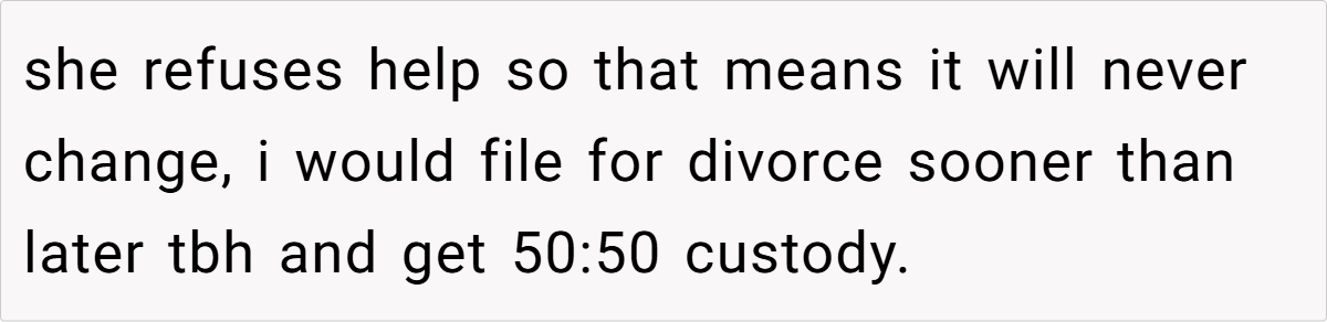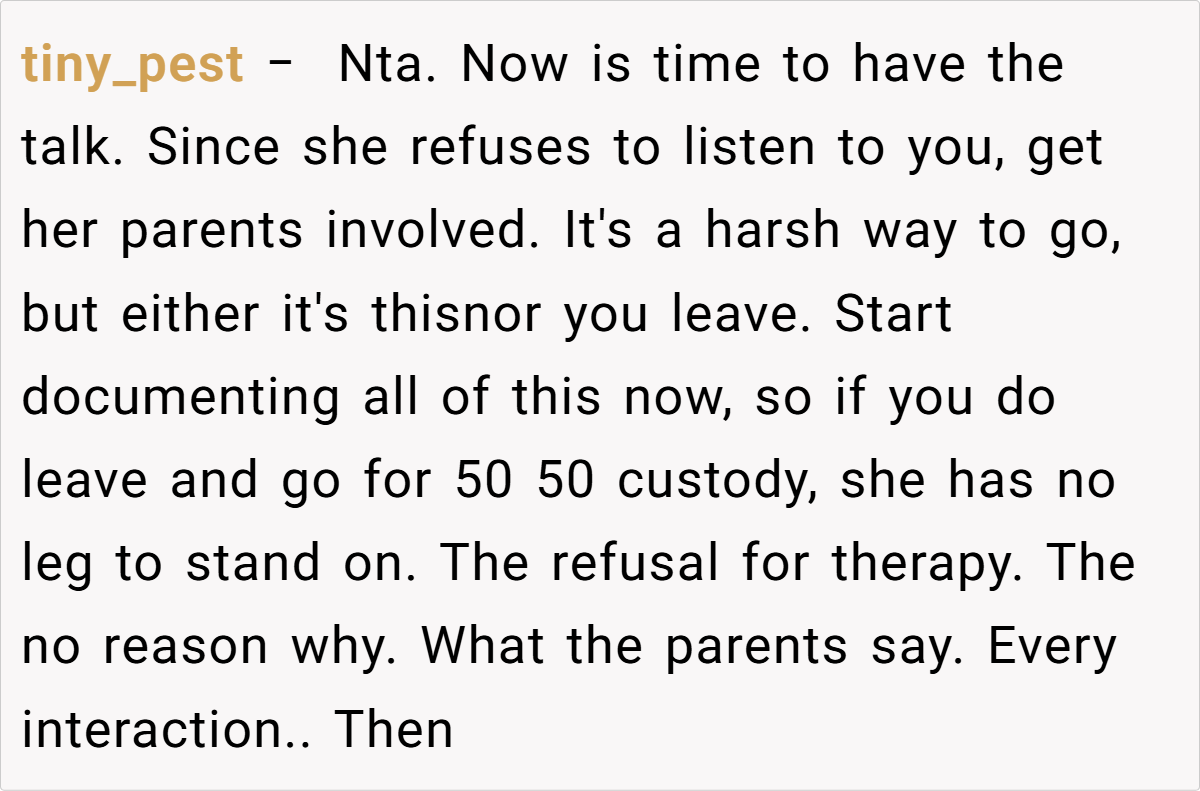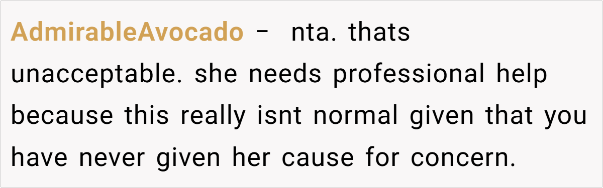 While some users lean towards immediate separation as a solution, others suggest involving medical professionals to assess any underlying mental health issues. These popular opinions on Reddit, marked by sharp wit and straightforward advice, raise the question: do they really reflect the complex realities of family dynamics?