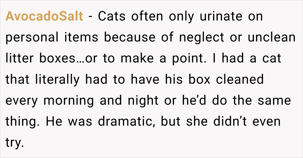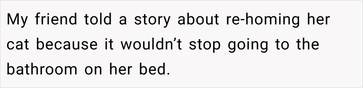Dr. Emily Weiss, an animal behaviorist and former VP of Shelter Research at the ASPCA, emphasizes that pets don’t just misbehave for no reason. “Inappropriate elimination is often a sign of stress, medical issues, or improper litter box maintenance. Owners should work with a vet or behaviorist before considering rehoming.”