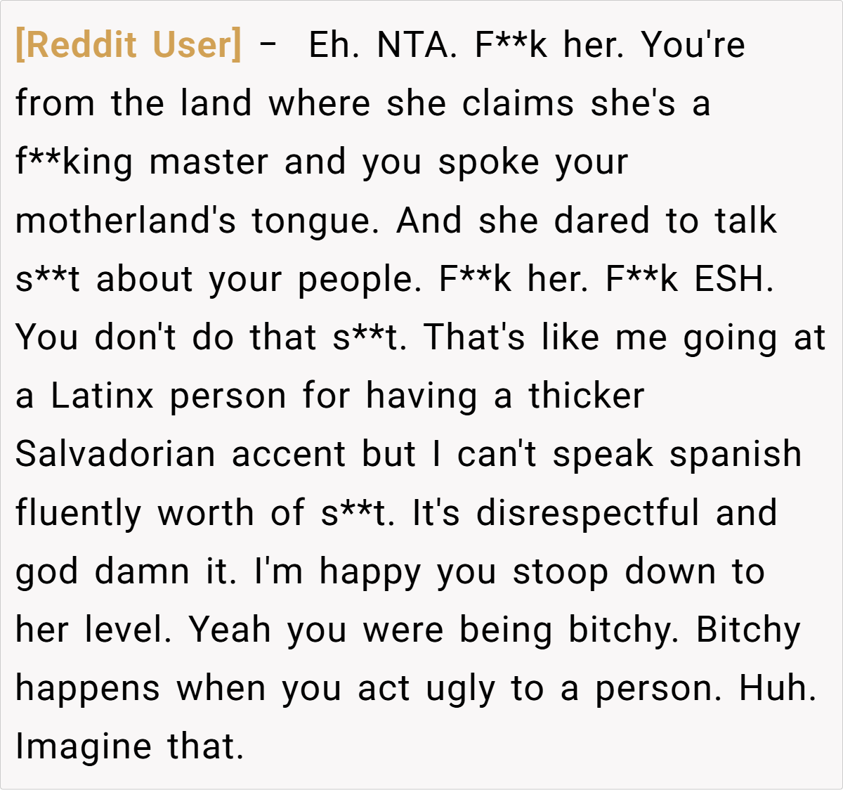 Ultimately, the OP’s experience serves as a reminder of the importance of respect and understanding in language and culture. While her approach may have been confrontational, it highlights the need for open dialogue about identity and the impact of language on social interactions.