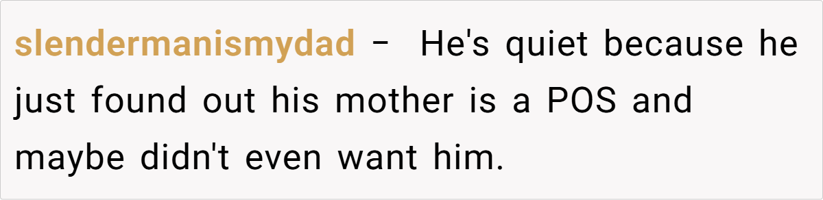 In this situation, the MIL’s comment was not a simple misunderstanding—it was a blatant disregard for the emotional safety of a child who was already frightened by the events of a car crash. Experts in family dynamics suggest that setting firm boundaries in such cases is both necessary and justified. The decision to cut off contact with a family member who has inflicted emotional pain—even if the comment was later couched as a “misunderstanding”—is a step toward protecting one’s mental health.