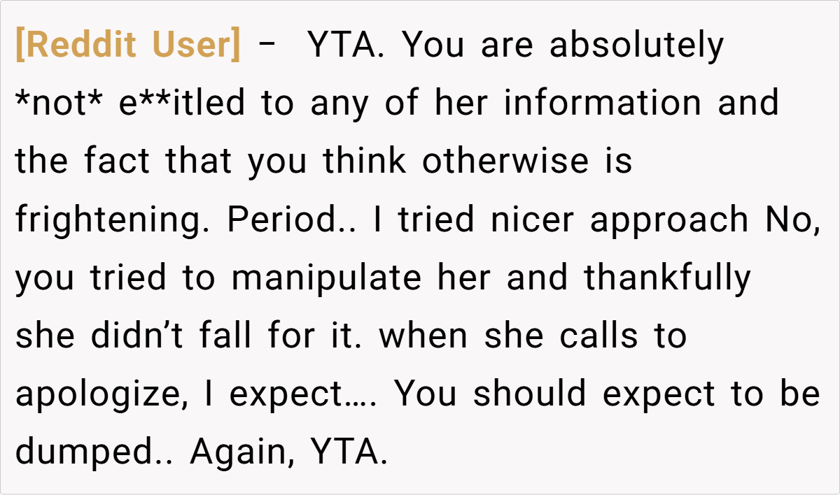 While his feelings of exclusion and curiosity are understandable, the approach he took raises significant concerns about respecting privacy and the ethical use of digital access in a relationship. The case prompts essential questions: When does the right to know become a violation of personal boundaries?