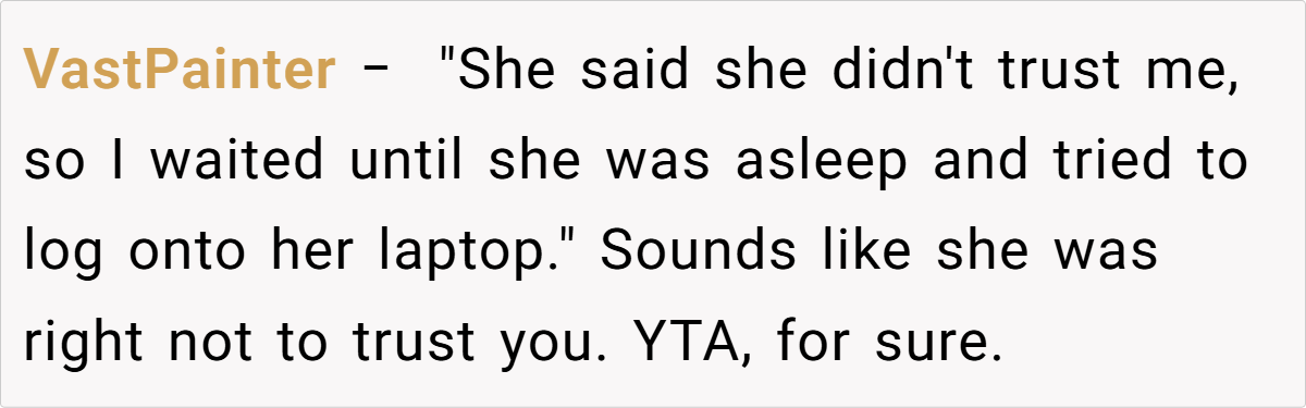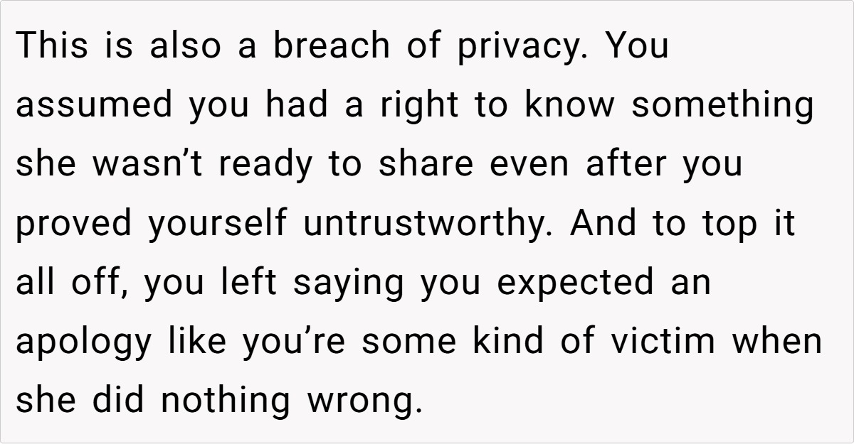 Others, however, sympathize with his curiosity and the desire to feel connected, though they acknowledge that his methods were invasive. The consensus tends toward the importance of respecting personal boundaries in relationships, especially when it comes to digital privacy and professional identity.