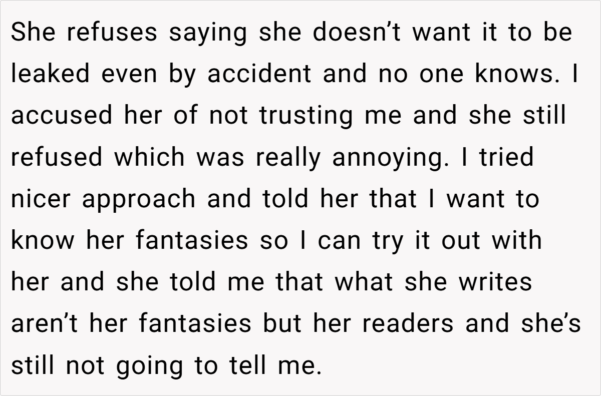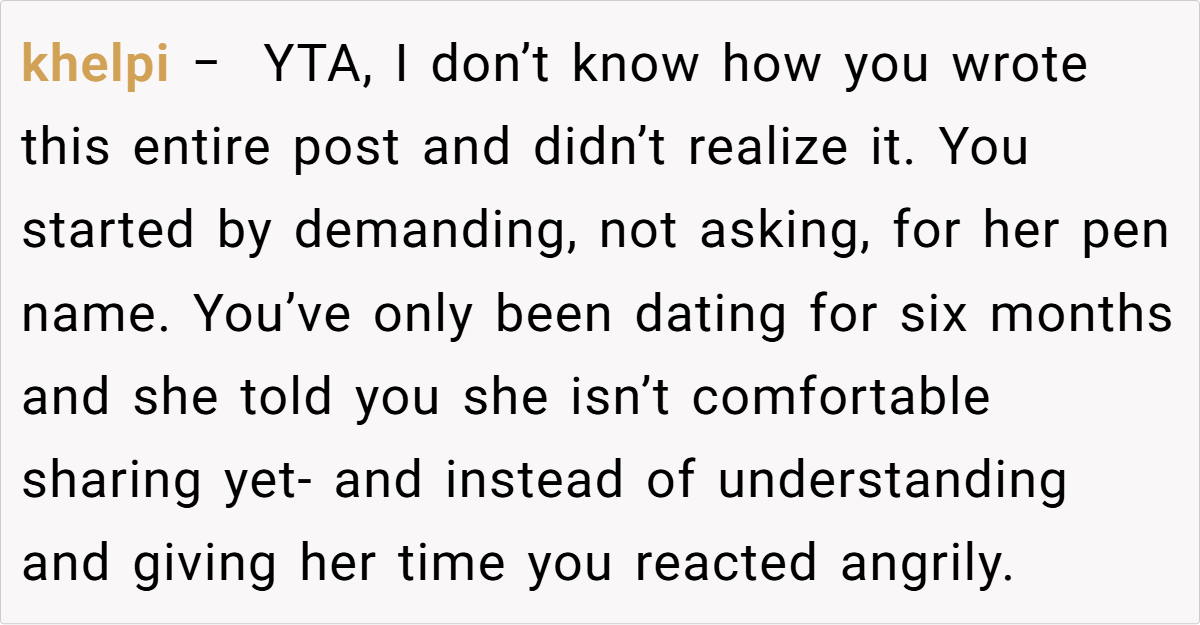 ‘AITA for demanding my girlfriend tells me her author’s pen name?’