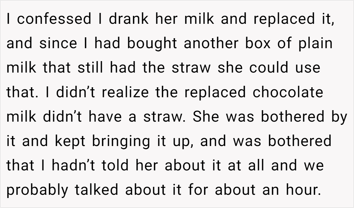 ‘ AITA for drinking my gf’s chocolate milk and replacing it without telling her?’