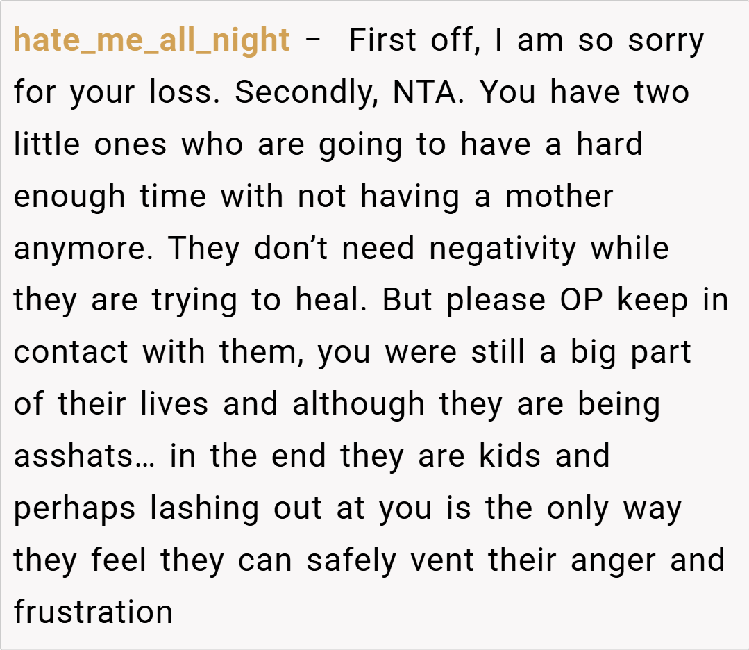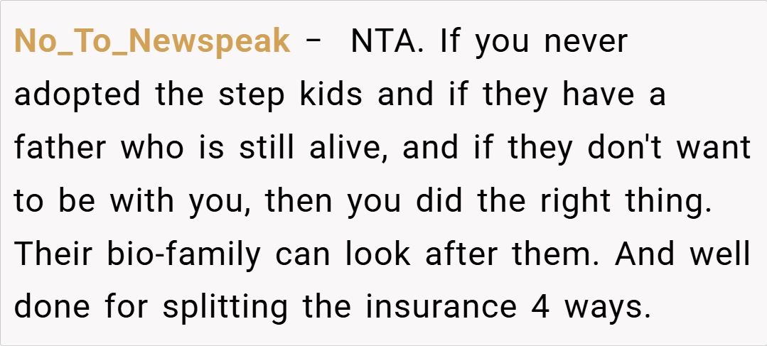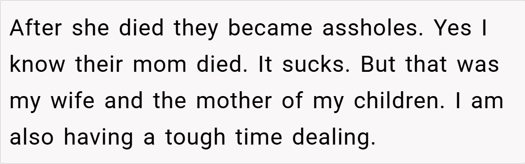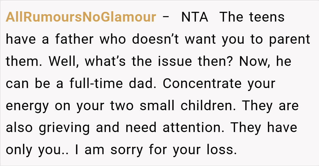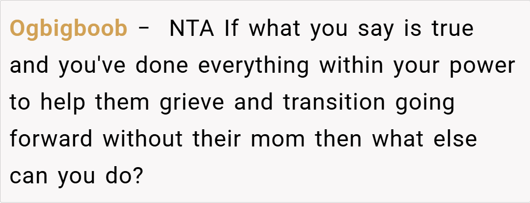 Many redditors echoed similar sentiments, arguing that while the loss and ensuing family dynamics are undeniably tragic, expecting a grieving parent to shoulder the emotional and practical burden of raising ungrateful teens is unfair. The community emphasizes that setting boundaries—even if it means stepping back—is sometimes the only viable solution to maintain a semblance of order amidst chaos.