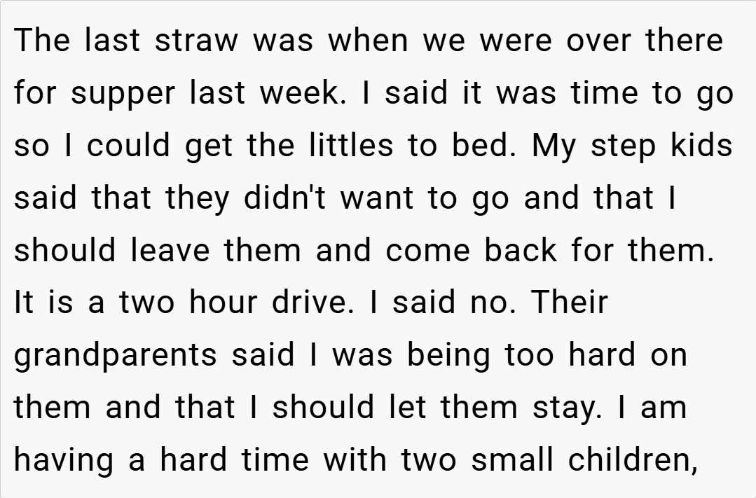 ‘AITA for dropping off my step kids with my in-laws and saying that they are not my problem any more?’