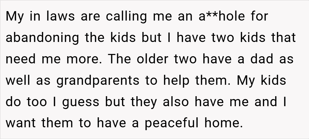 In addition, the conflicting expectations from both sides of the family add layers of complexity. The in-laws and the stepchildren’s paternal family exert pressure on him to remain involved in parenting a group he no longer legally or emotionally connects with. This tug-of-war not only intensifies his stress but also underlines a broader social issue: the expectations placed on stepparents during crises.