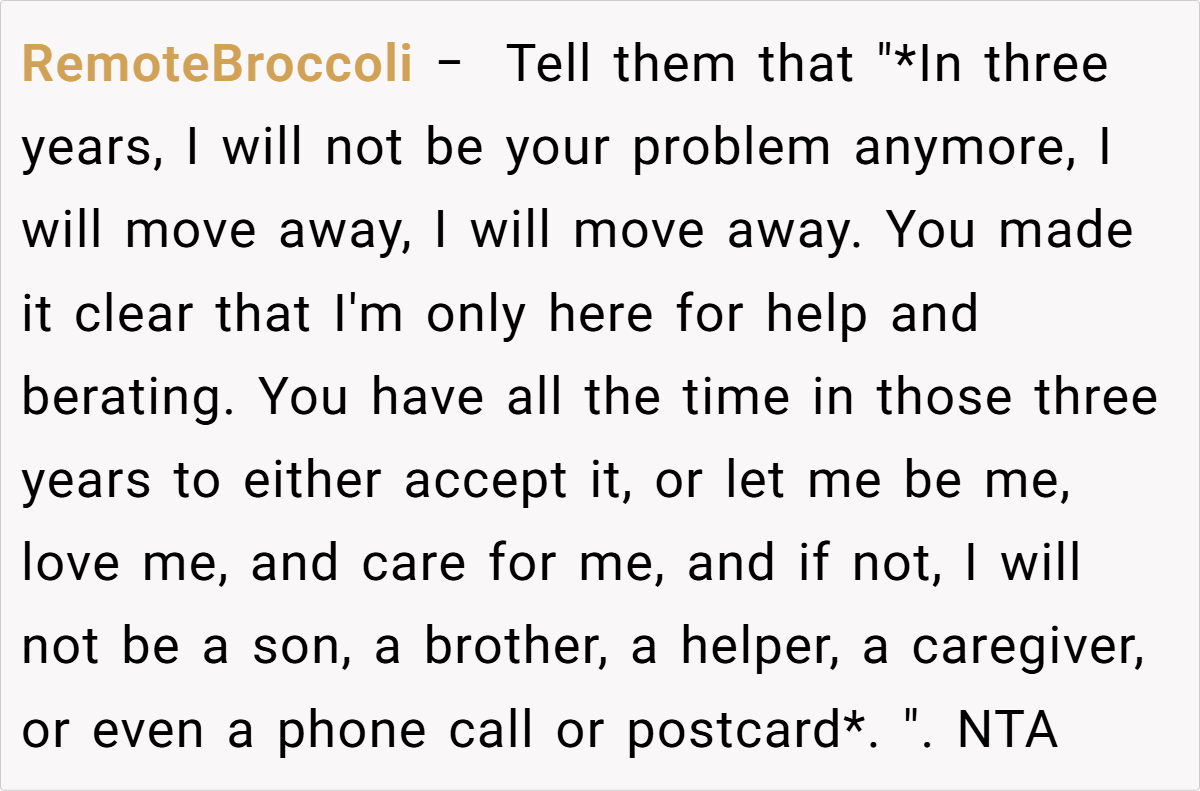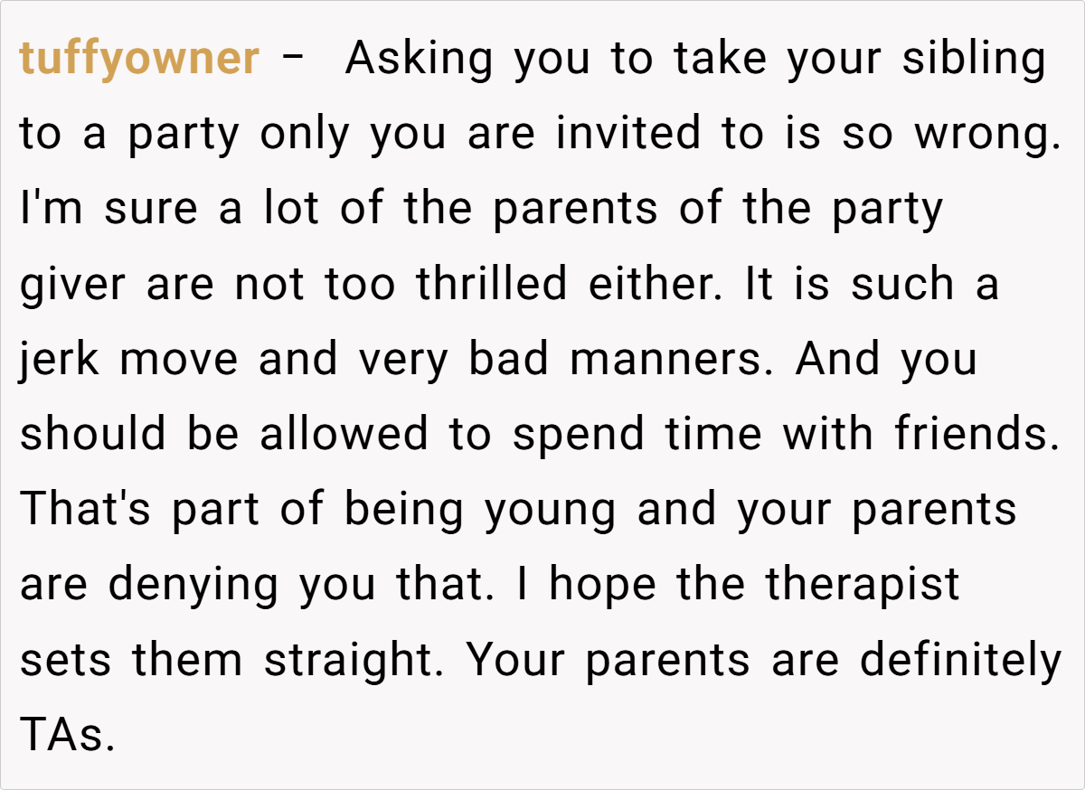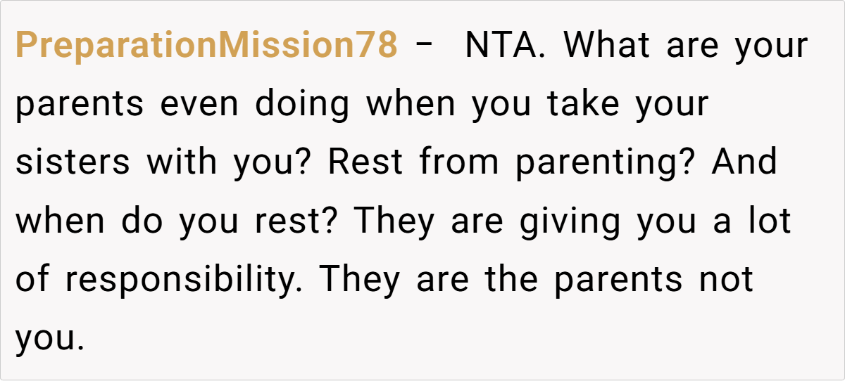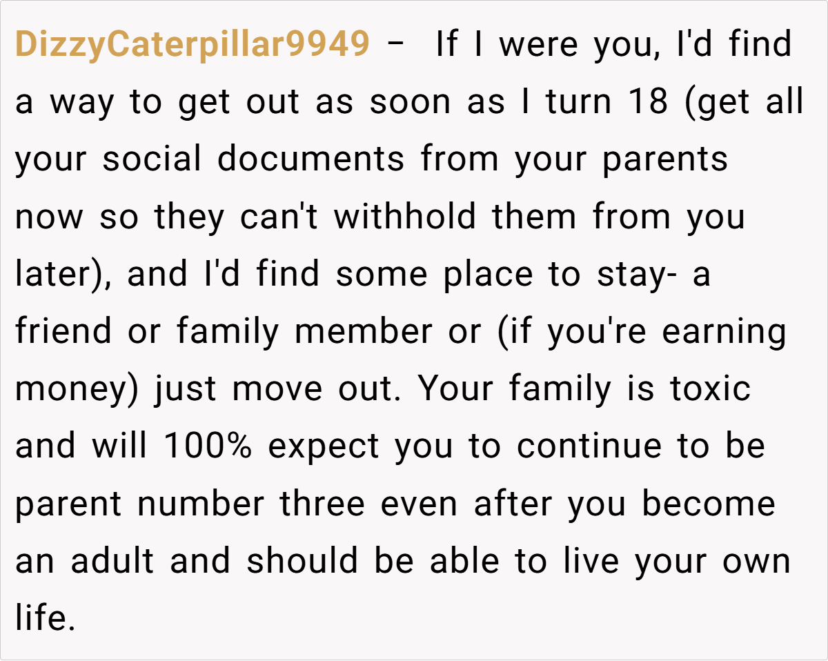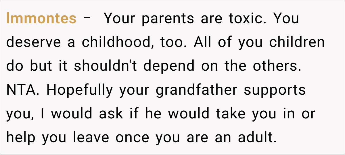 Here are some hot takes from the Reddit community—candid, humorous, and refreshingly blunt. The responses range from sympathy for the teen to outright criticism of the parental approach, with many echoing the sentiment that no child should bear such burdens.