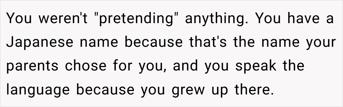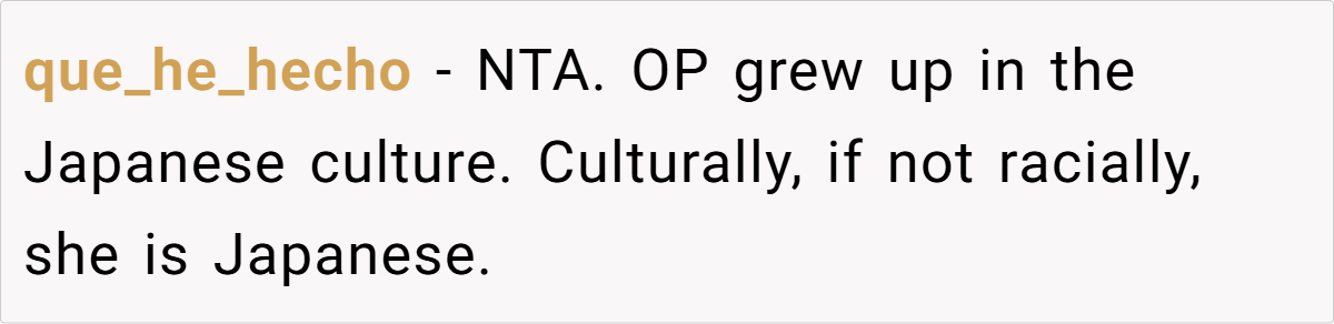This situation is an example of how cultural identity is more complex than appearances alone. OP’s experience shows that people can have deep, meaningful connections to cultures that aren’t necessarily tied to their ethnicity.