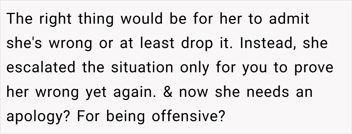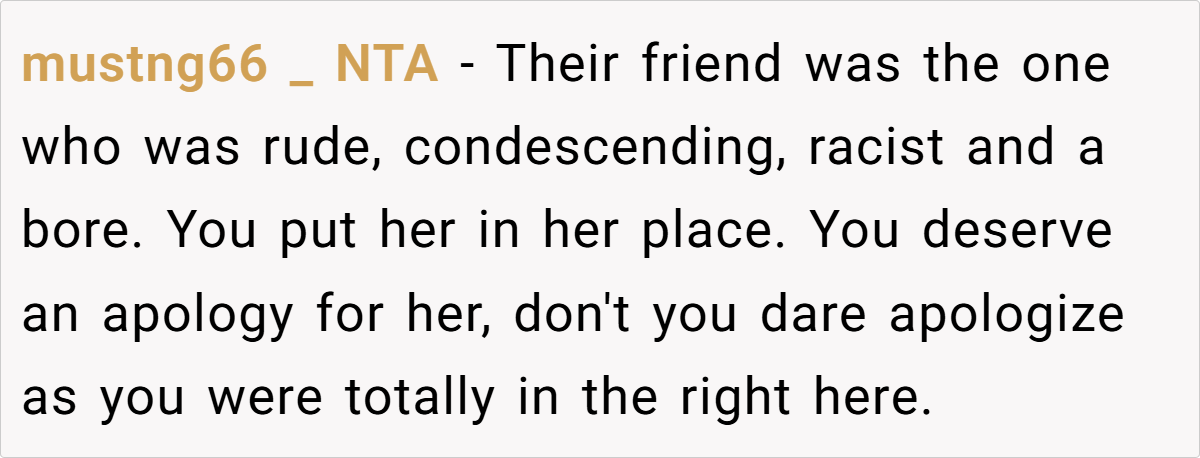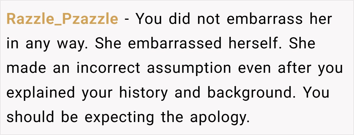 5. Stand Your Ground Without Escalating – OP defended herself without being aggressive—she simply provided proof of her background and moved on. She didn’t insult the other person, just countered their assumption with facts. This was the best approach to take in this scenario.