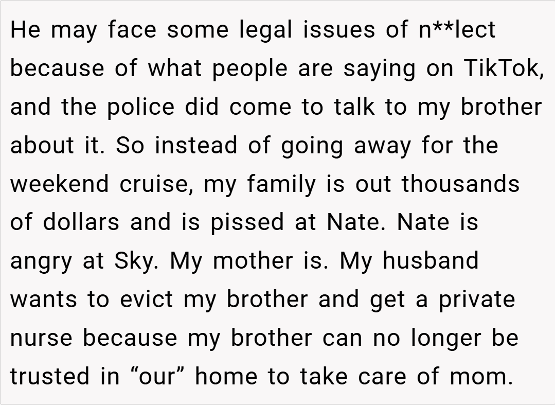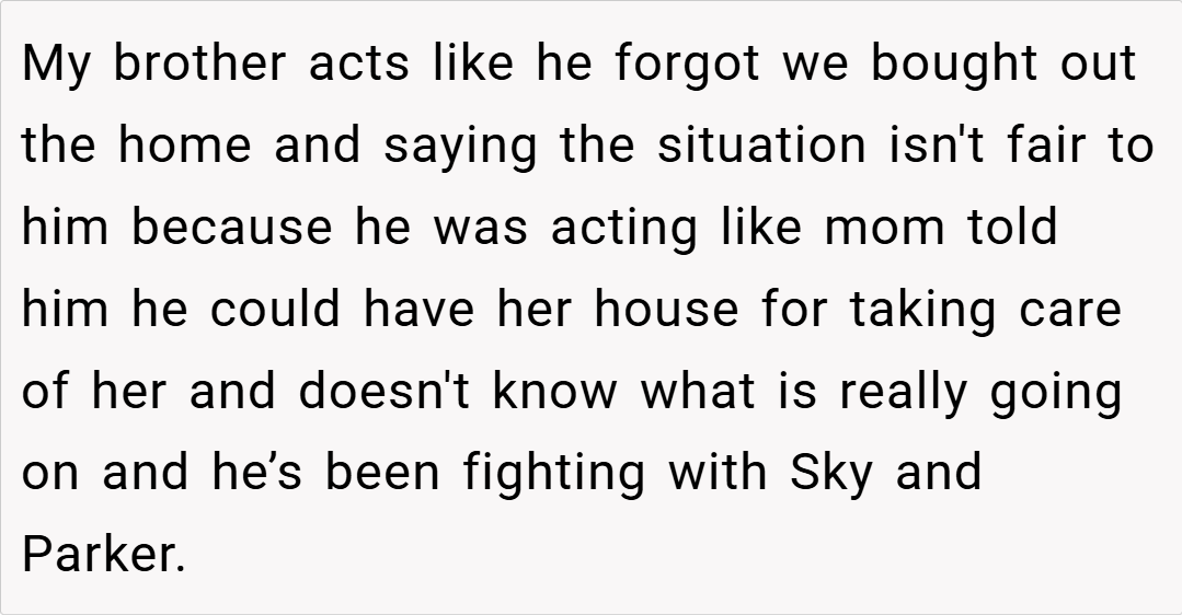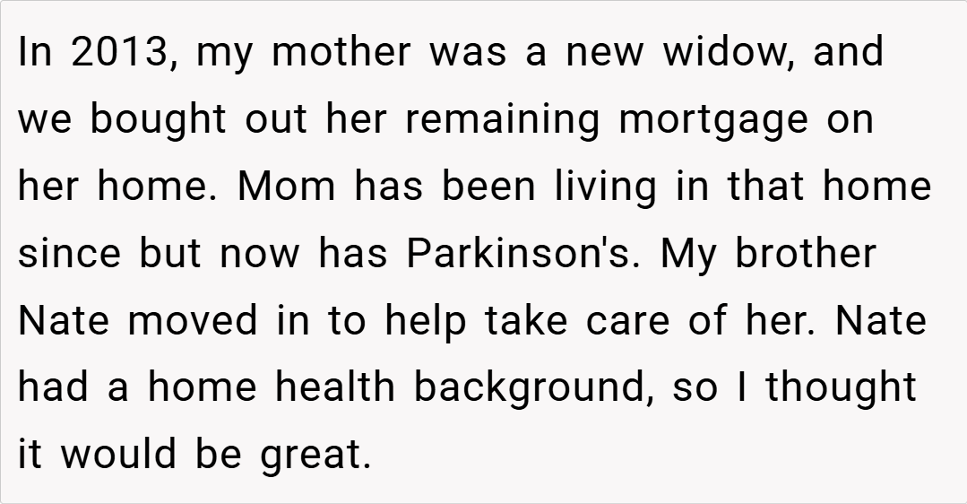Family conflicts can often run deep, especially when responsibilities and neglect mix in a shared household. I (parent) recently recounted an incident that still haunts me from Memorial Day. Years ago, after our mother became a widow and we bought out her home, my brother Nate moved in to help care for her.