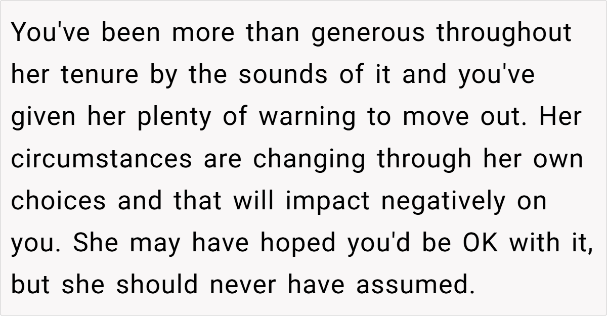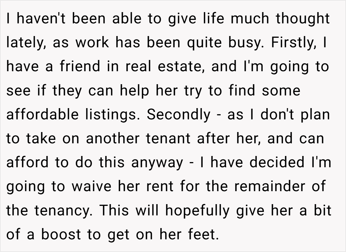 Ultimately, the OP’s situation serves as a reminder of the delicate balance between personal rights and compassion in landlord-tenant relationships. While he is well within his rights to request that his tenant move out, the emotional implications of his decision should also be considered.