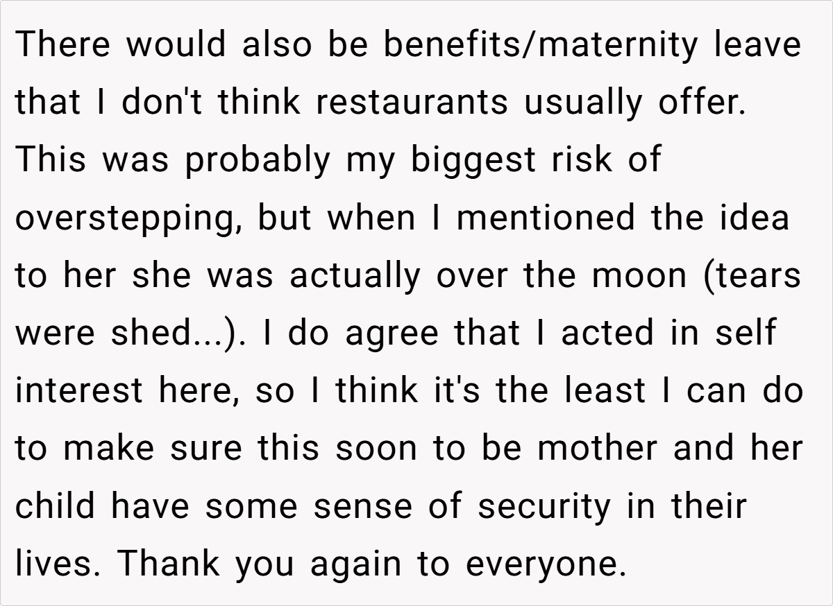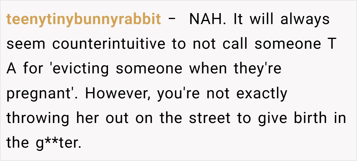 However, Dr. McClain also emphasizes the importance of compassion in such situations. “While it’s legal to evict a tenant for personal reasons, landlords should also consider the human implications of their decisions, especially when it involves significant life changes like pregnancy.” The OP’s decision, while legal, must be weighed against the potential emotional impact on his tenant, who is facing considerable challenges.