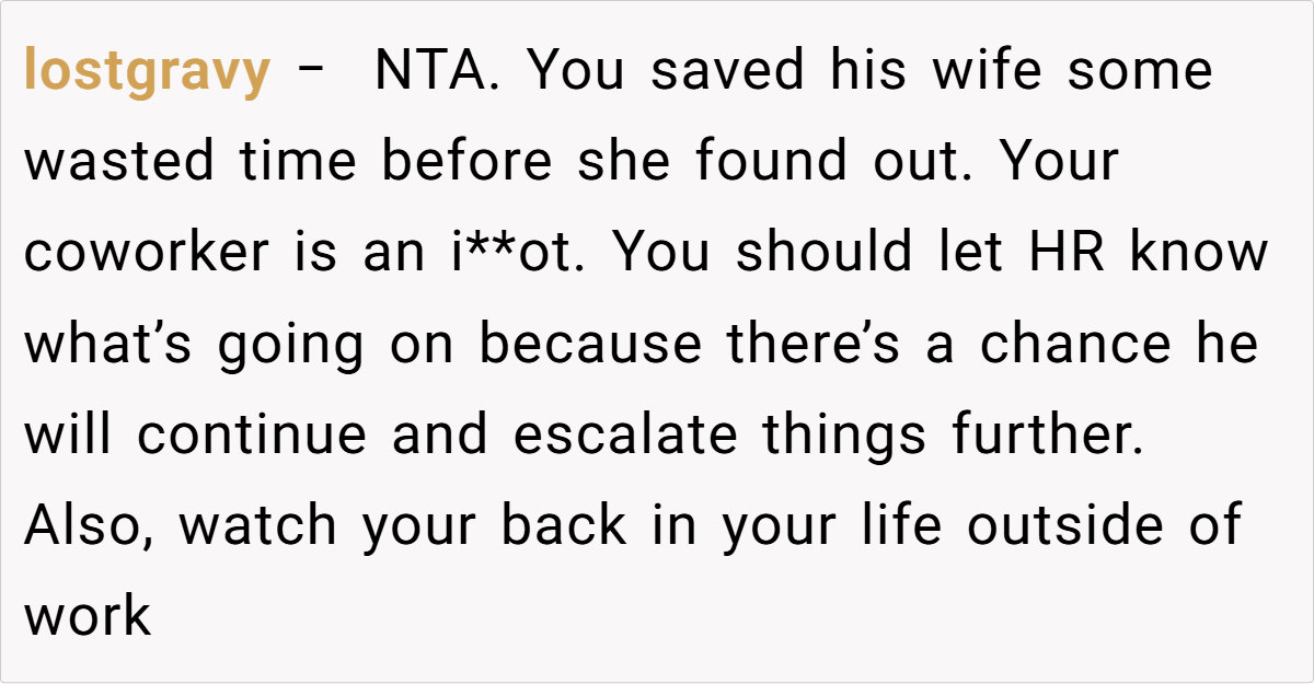 The reactions on Reddit were as varied as they were candid. Many users expressed strong support, asserting that the coworker’s actions were an unacceptable breach of trust and professionalism. Others humorously noted that in this digital era, “privacy” is nearly a relic. Despite differing viewpoints on the method of retaliation, the general consensus leaned toward NTA—non-the-asshole—with many calling for accountability and urging HR to address such behavior.