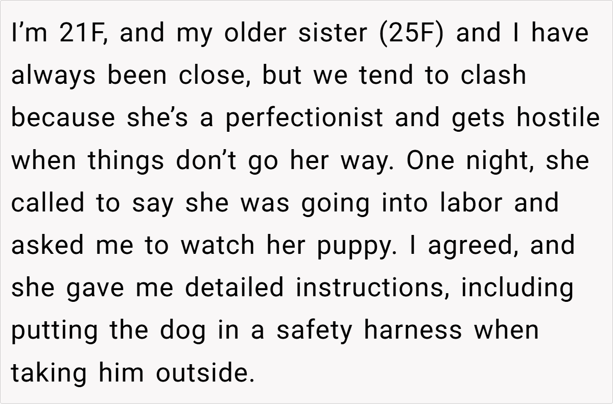 ‘AITA For “Failing” To Take Care of My Sisters Dog While She Was In Labor?’