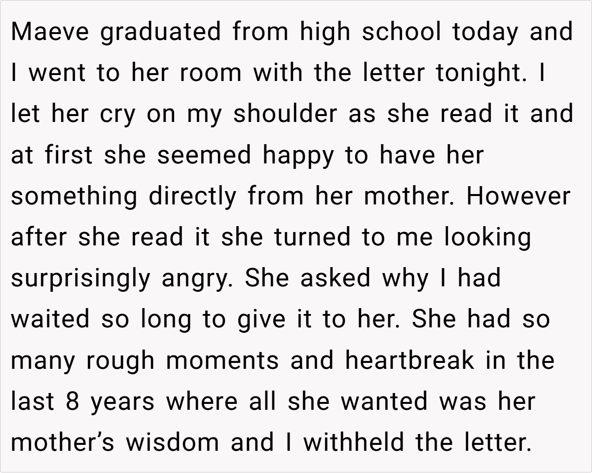 Loss leaves an indelible mark on our hearts, and sometimes the gestures meant to comfort can stir up unexpected pain. In this deeply personal story, a devoted father recounts the bittersweet moment of handing his daughter a letter written by her late mother—a letter intended as a cherished time capsule for her graduation day.
