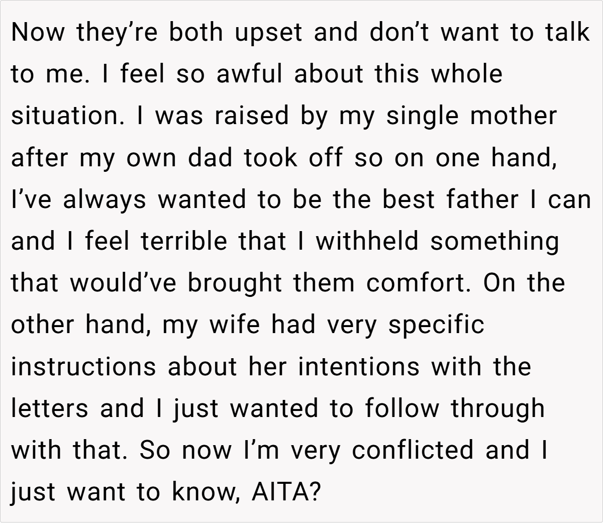 ‘AITA for following through with my late wife’s wishes?’