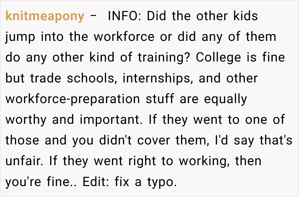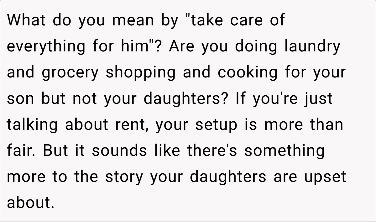 Navigating the dynamics of parental promises and the responsibilities of adulthood is never straightforward. In this case, the parent’s decision to require the daughters to work and pay rent—while continuing to support the son through college—stems from an early, clearly communicated agreement. The idea was simple: if you choose the traditional route of higher education, you receive full support; if not, then it’s time to learn self-sufficiency by working and contributing to household expenses.