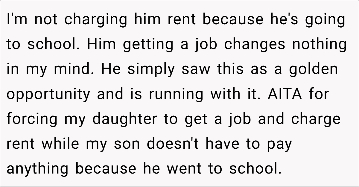 ‘AITA for forcing 3 of my kids to get a job and charging rent but not the other?’