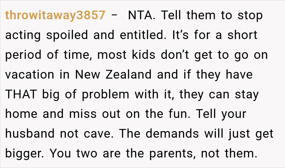 Vacation planning can be both exciting and stressful, especially when it comes to making arrangements that satisfy everyone’s needs. Our OP, a 40-year-old parent, recently organized a summer trip to New Zealand with her husband and two daughters, aged 14 and 16. With limited opportunities for family vacations in the past, everyone was excited about the getaway.