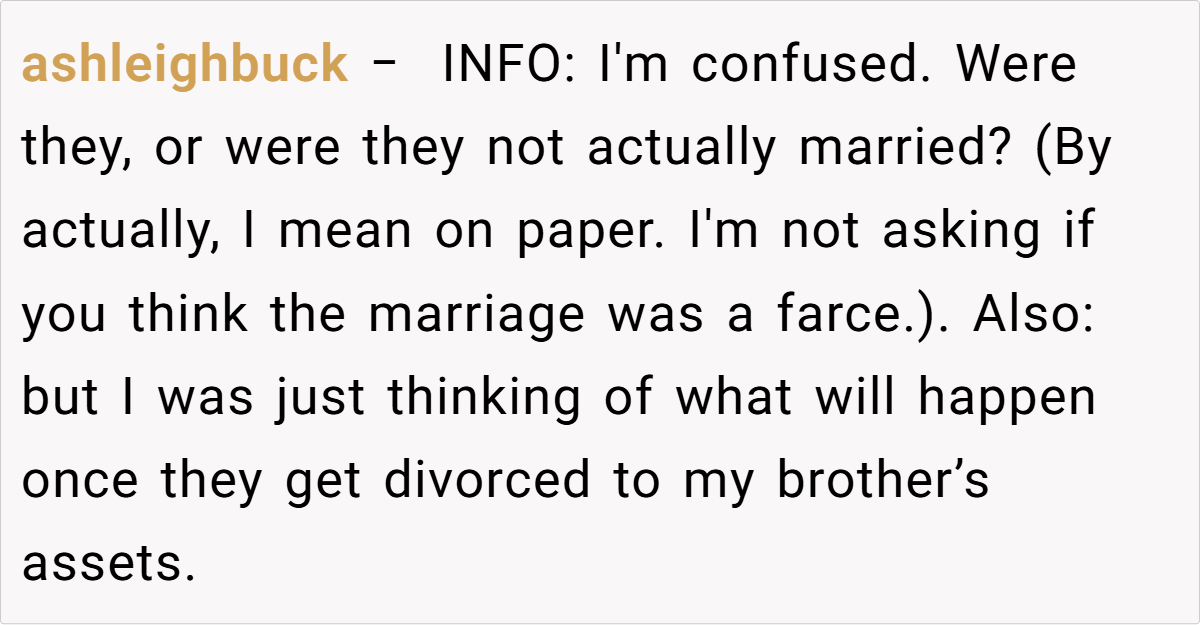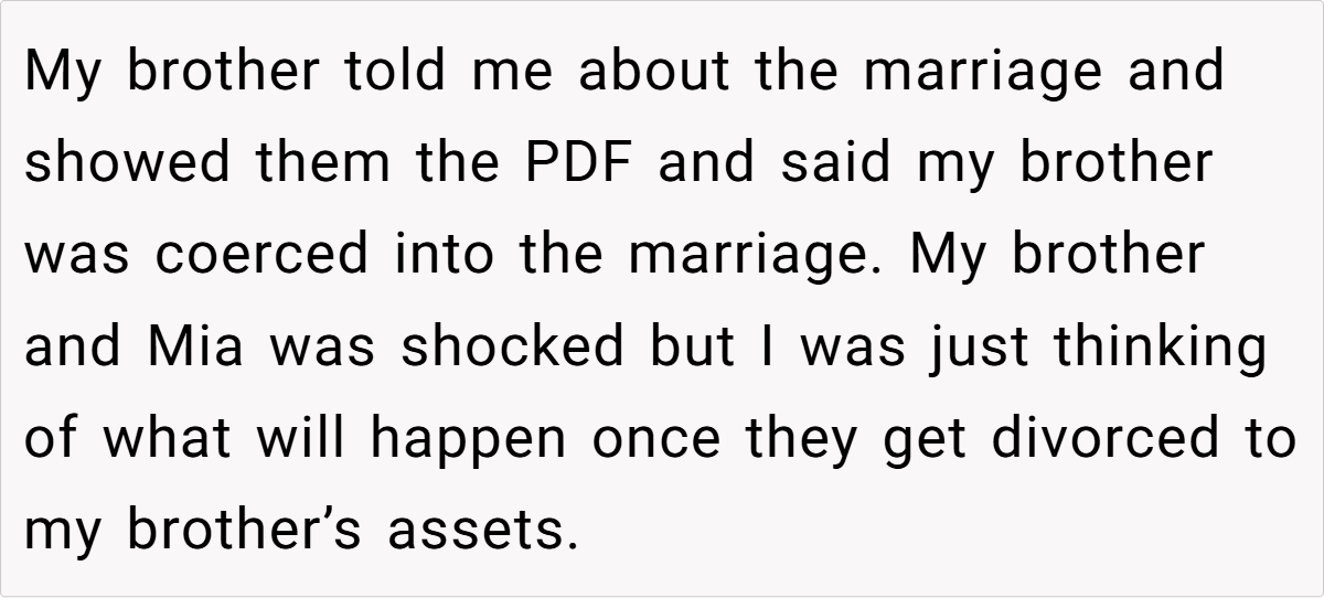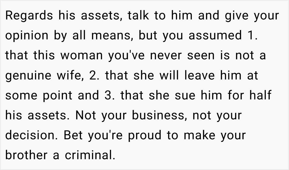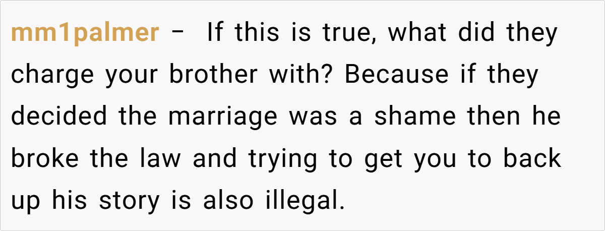 Letting personal judgment dictate family loyalty is never an easy path. In cases where deception intertwines with legal matters, the pressure to safeguard personal and familial assets can push individuals into making hard choices. The sister in this story was confronted with a moral and legal dilemma: should she cover up a fraudulent marriage for the sake of family harmony, or protect her brother’s financial future at the risk of severing family ties? Her decision, though controversial, highlights the complexity of balancing love, duty, and responsibility.