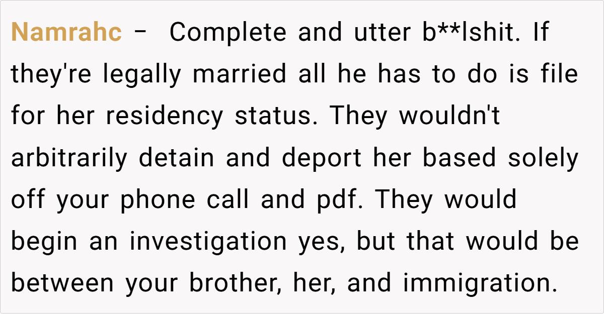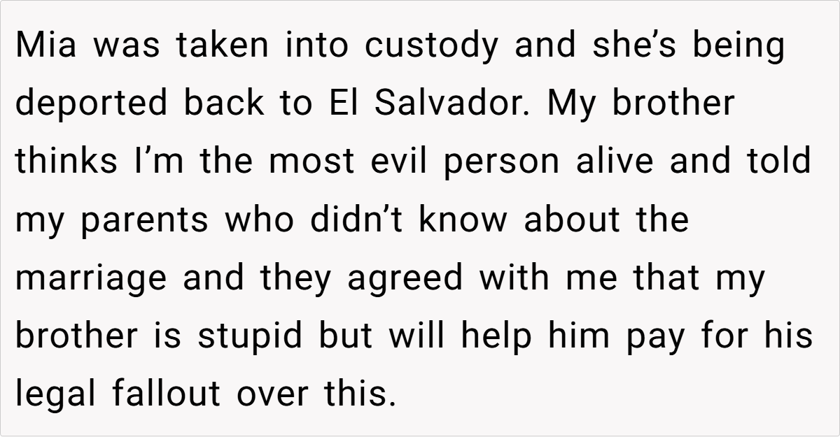 Life in a family can be as unpredictable as it is entertaining, and sometimes the decisions we make in the name of protecting loved ones lead to unforeseen drama. In this case, a sister finds herself in hot water after refusing to help her brother cover up a questionable marriage that ends with an unexpected deportation. The tension is palpable, and the air is filled with equal parts shock, frustration, and a touch of dark humor. The situation quickly escalates from mere sibling banter to a full-blown family scandal that leaves everyone reeling.