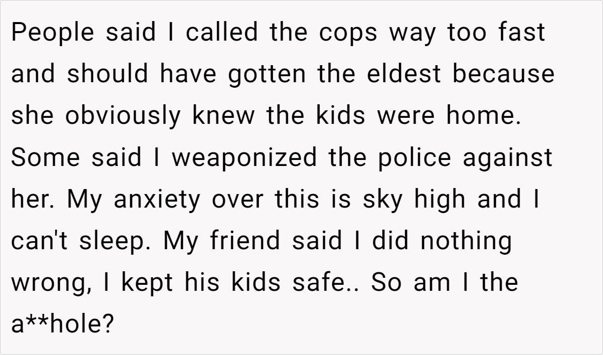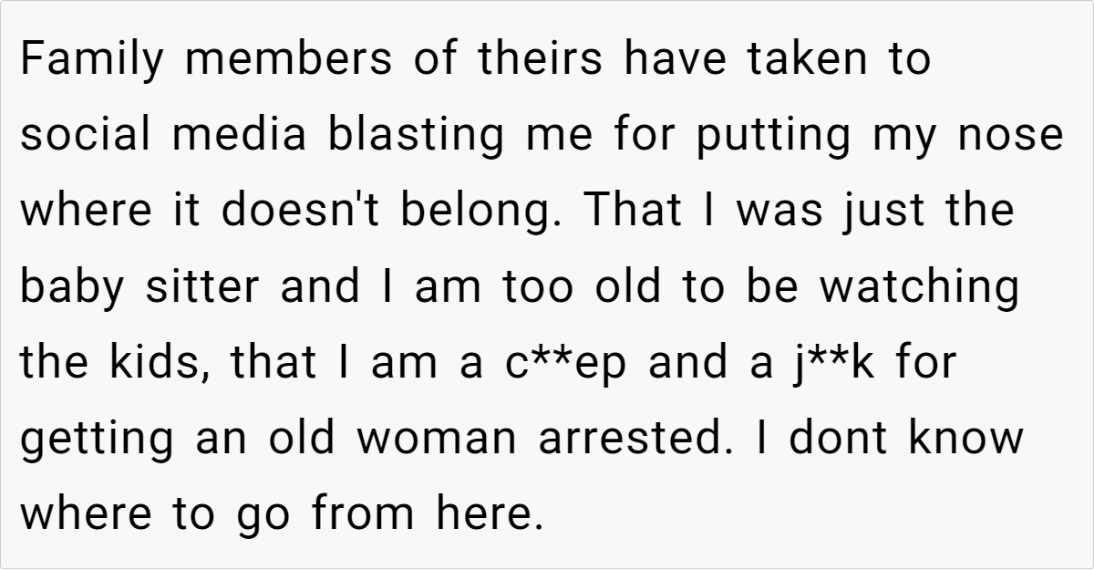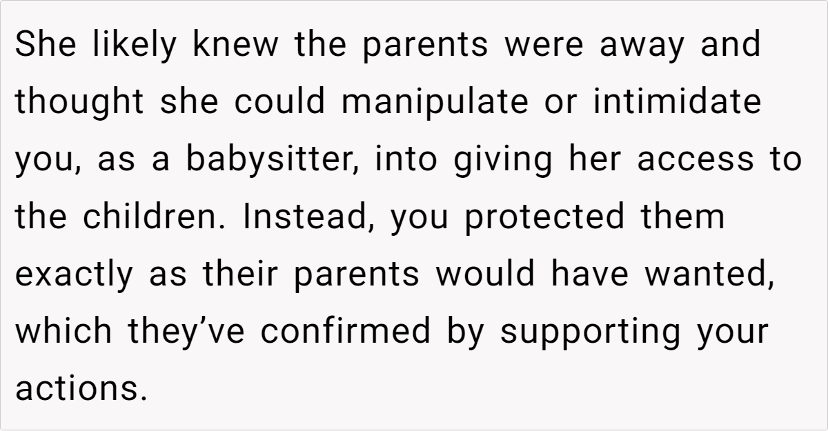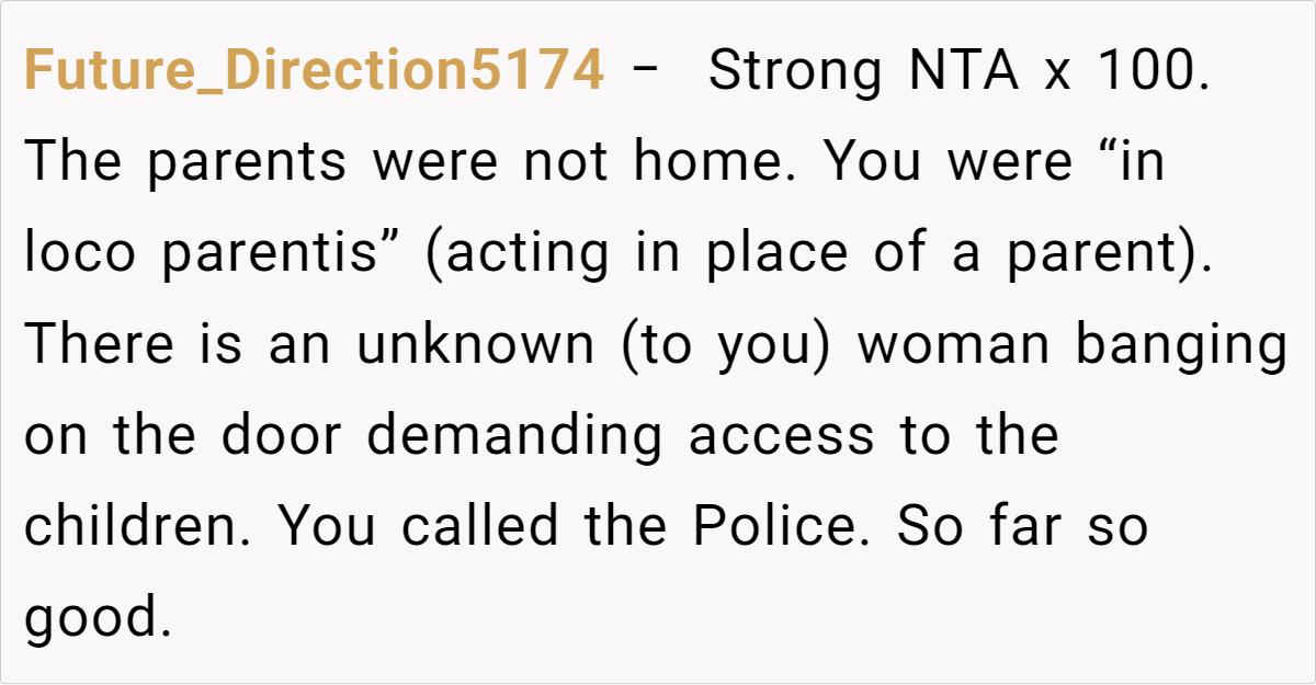 Stepping into a babysitting role comes with the heavy responsibility of ensuring a safe environment for the children. In this case, the babysitter acted on instinct when an uninvited guest—an estranged grandmother with a notorious reputation—arrived unexpectedly. Balancing concern and duty, the decision to alert the authorities was driven by an acute awareness of the potential dangers that lurk when family dynamics are complicated. It was a split-second choice made in a moment of heightened uncertainty.