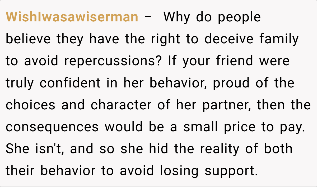 Others, however, felt that personal matters of relationships and parenthood are private and should remain unspoken in public forums. Despite the mixed views, the overwhelming sentiment among many redditors is one of support for holding individuals accountable for their actions, even if that means ruffling family feathers.