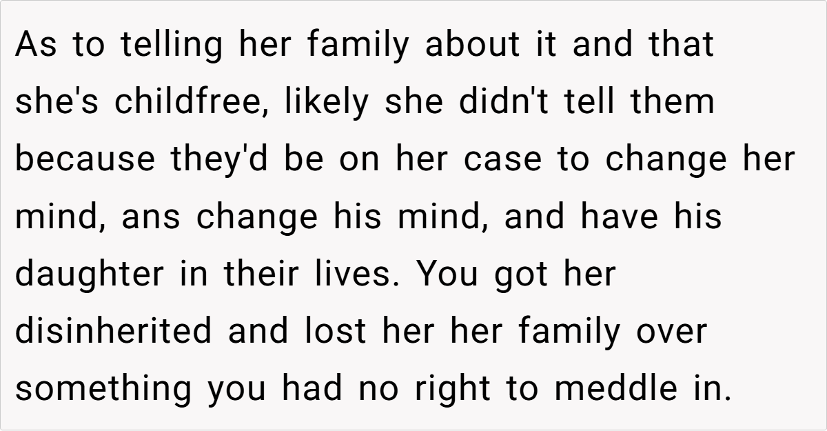 While some may see my actions as meddling, others might argue that they were a necessary stand for the welfare of a child. As families evolve, these conflicts remind us that clear, respectful communication is key, though it does not always prevent deep personal hurt.