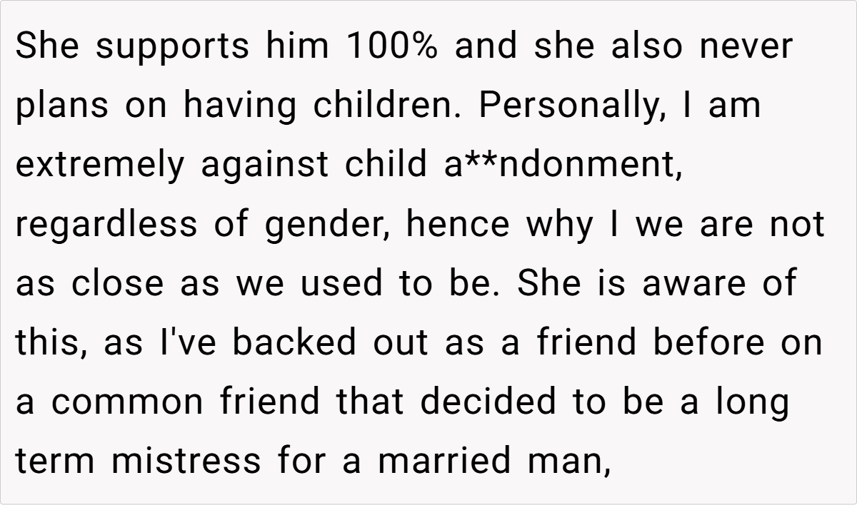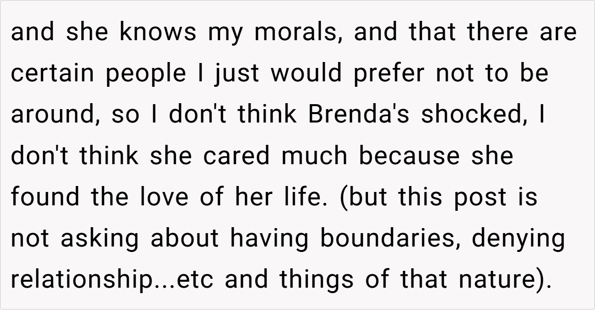 This story underscores the difficult balance between loyalty to friends and adherence to personal moral standards. While I stand by my decision to support Brenda’s parents in disowning her, it raises an important question: Where do we draw the line between speaking our truth and unnecessarily meddling in someone else’s personal choices?