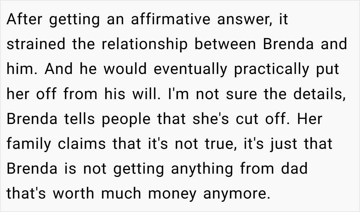 In this scenario, the decision to support Brenda’s parents in disowning her wasn’t made lightly. It was a response to a repeated pattern of behavior that, in my view, endangered a fundamental principle—the welfare of a child. While Brenda’s perspective is rooted in personal autonomy and a rejection of traditional expectations, many argue that such a stance can inadvertently normalize neglect
